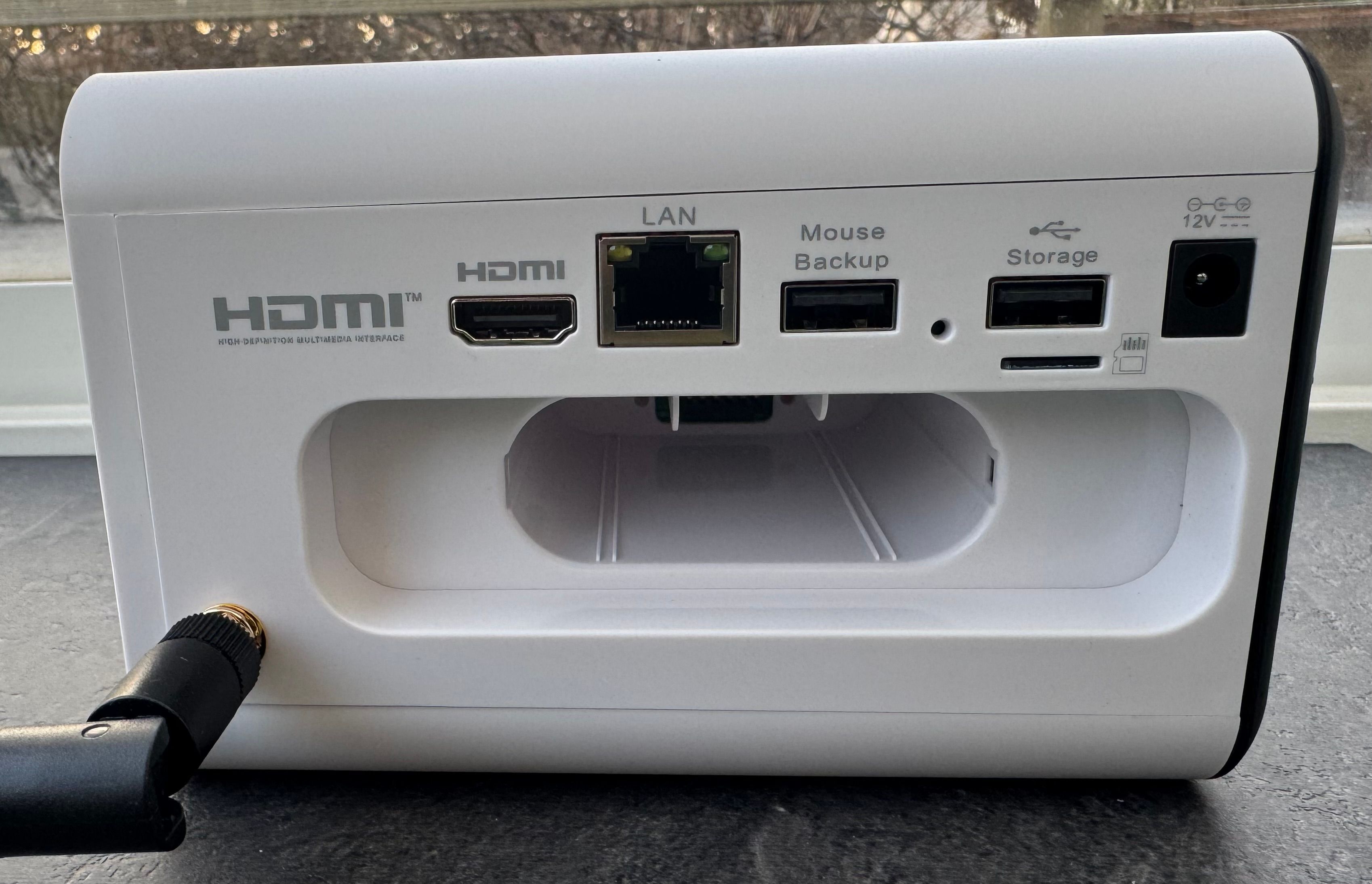 På baksidan av hubben hittar vi två ovanliga kontakter för konsumentsegmentet: en HDMI-utgång och en USB-kontakt märkt Mouse. När jag kopplar in en skärm får jag upp en överblick över fyra kameror (i mitt fall bara två med bild), där jag kan livestreama och hålla koll på alla detekteringar som kamerorna i systemet har gjort. Med hjälp av muspekaren kan jag klicka runt och filtrera händelser av olika slag vid vald tidpunkt på valda kameror. Detta är supersmidigt om man använder Swann för att till exempel övervaka ett mindre företag.