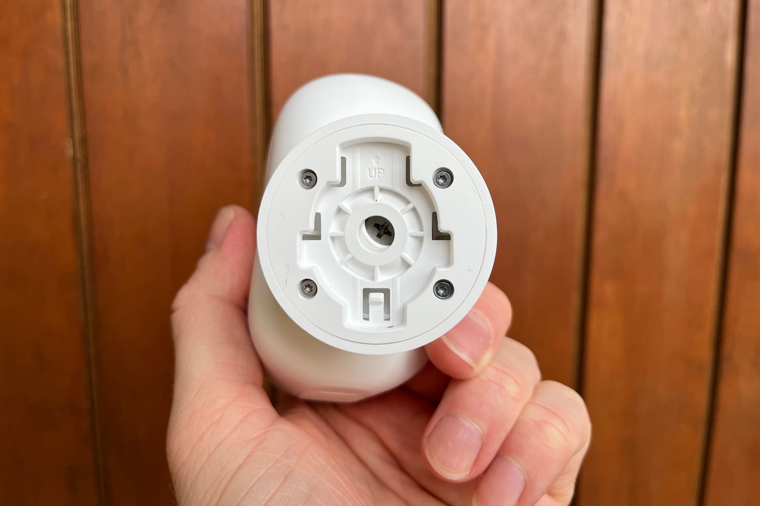 Det nya fästet till Essential-serien har blivit ännu enklare att montera och installera kameran. Med två skruvar (inklusive medföljande plugg) fäster du basplattan på väggen, och sedan är det bara att klicka på kameran.