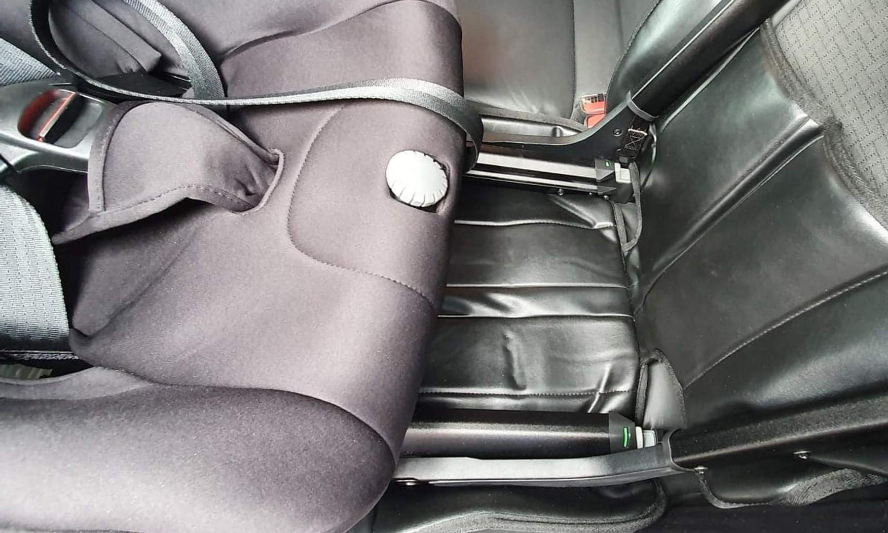 En smart funktion är att det går flytta stolen fram och tillbaka för att justera benutrymmet. Jättebra grej, för då kan man anpassa stolen efter barnets längd men det är också bra om man ska åka i en bil som har begränsat med benutrymme.