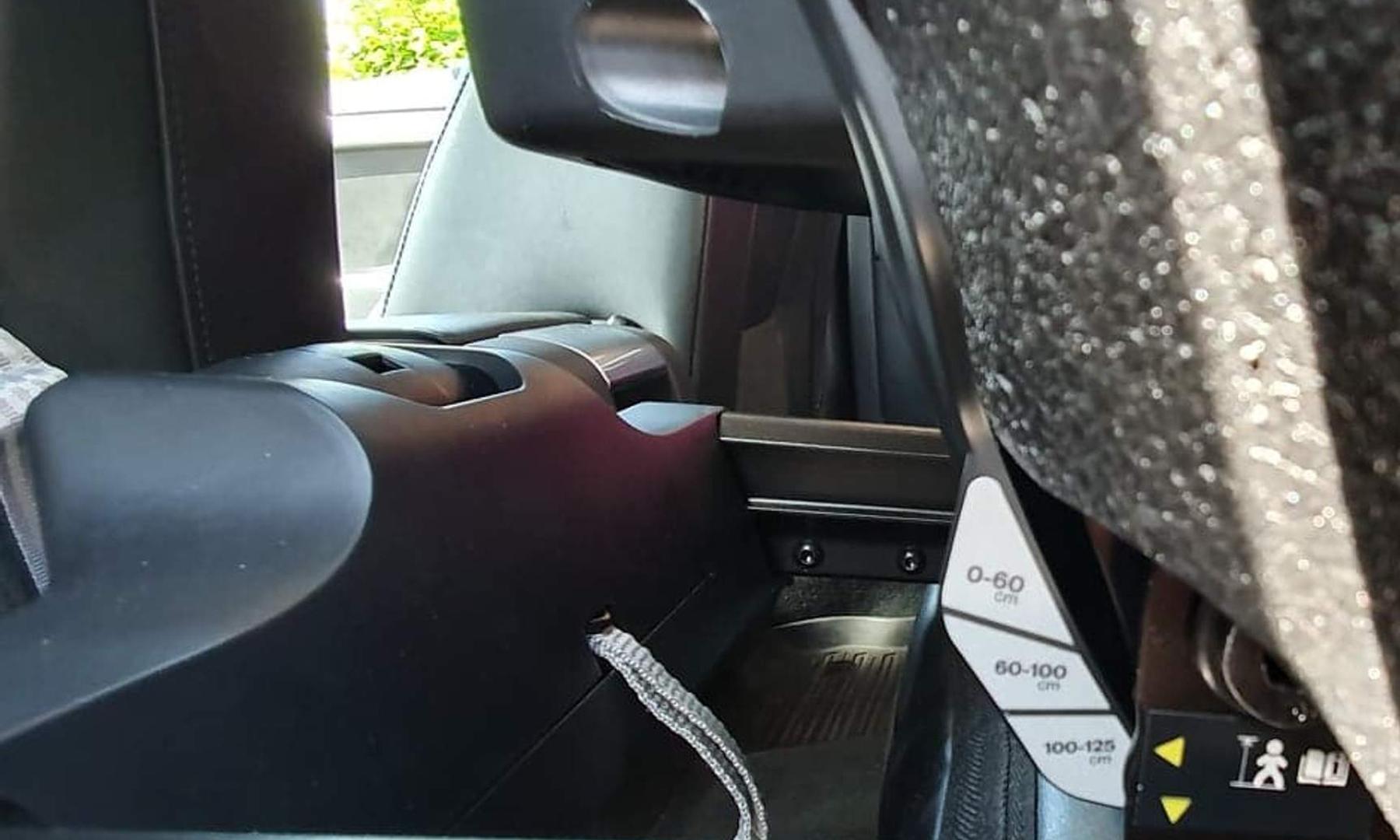 Det finns många smarta markeringar som hjälper en att placera barnet rätt. Skenan på stolen har markeringar som visar vilket benutrymme man bör ha beroende på barnets längd. Det är okej att gå ett hack över markeringen men inte mer i körläget, alltså när man åker, utan det större utrymmet är till för när barnet ska in och ut ur stolen för då kan de enkelt klättra i och ur den själva.