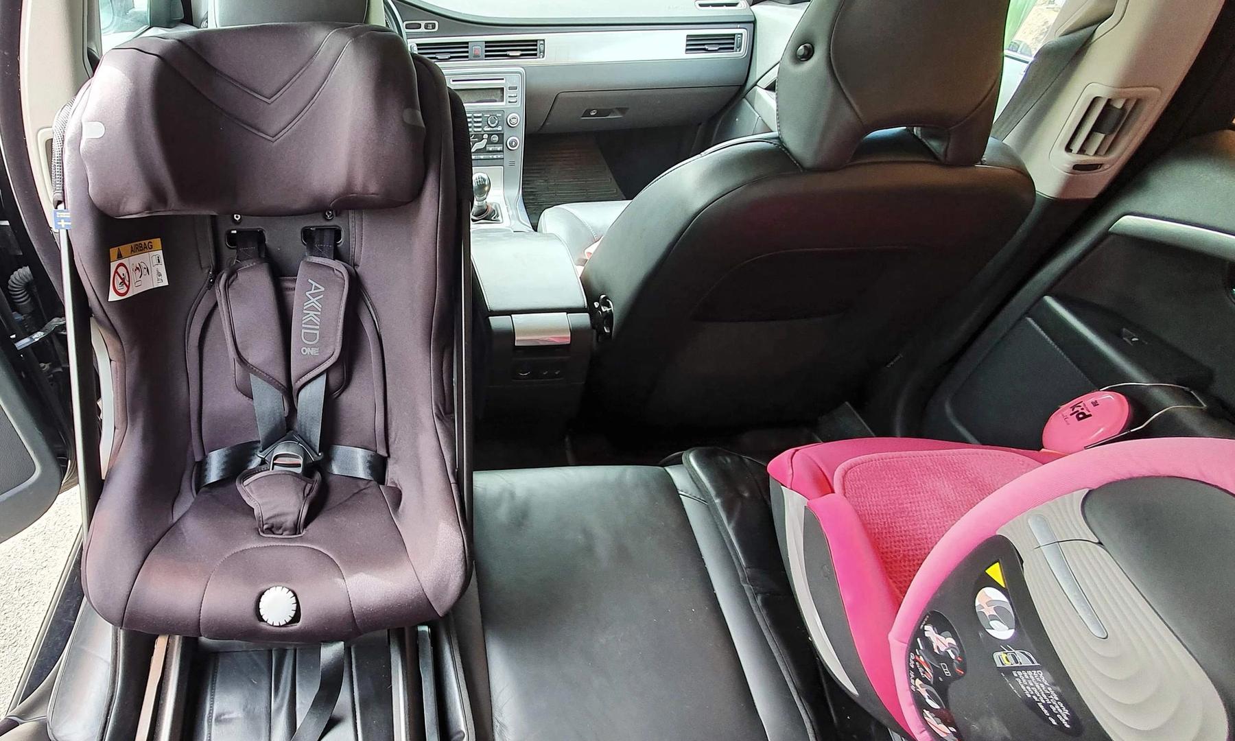 Benutrymmet är verkligen det rymligaste jag varit med om. Både 4 och 6-åringen har gott om plats för ben och fötter och får till och med plats med skor på sig om de vill ha det. Trots det stora benutrymmet för barnen så sitter jag, ca 170 cm lång, skönt framför stolen i vår Volvo V70.