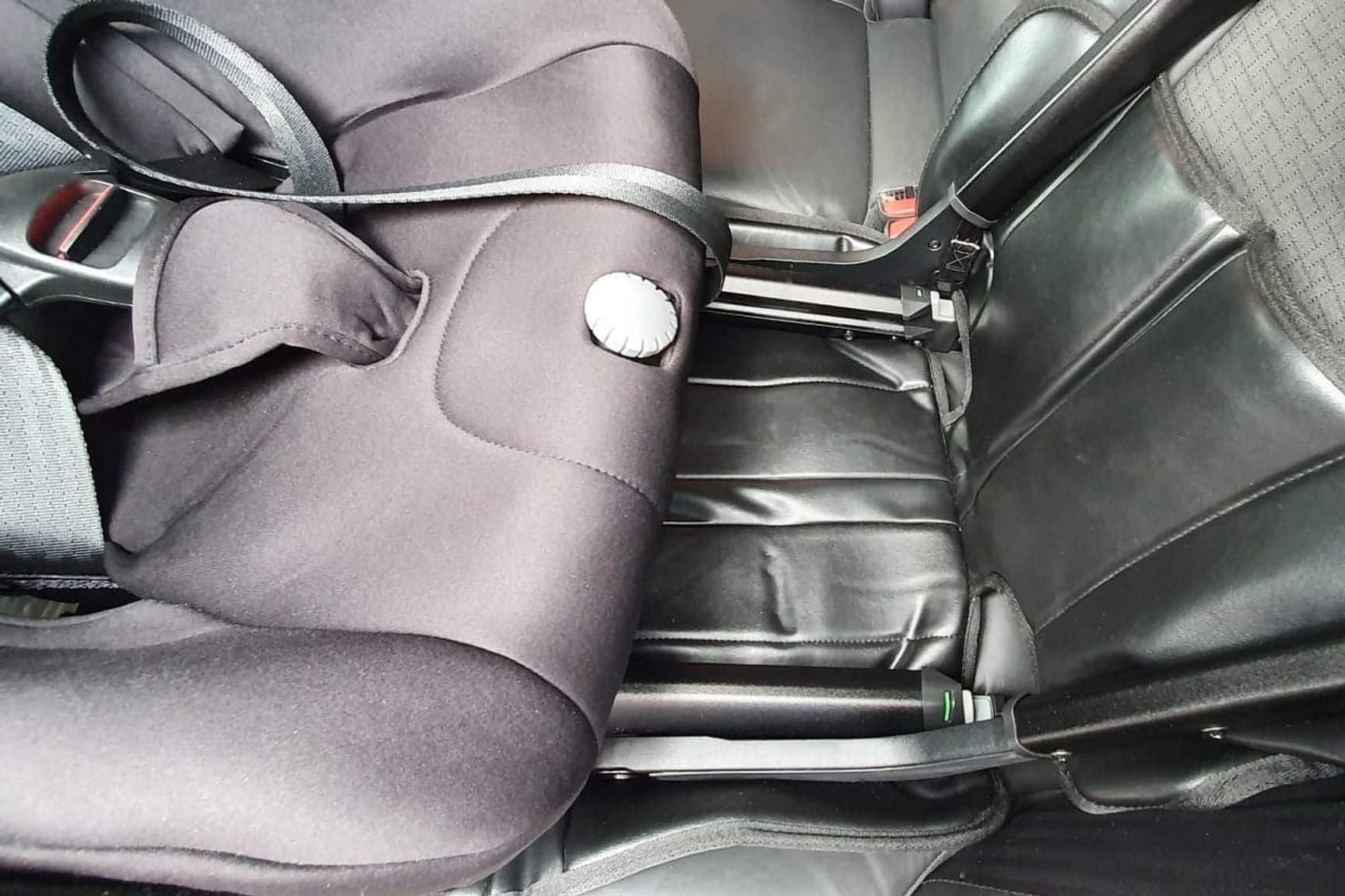 En smart funktion är att det går flytta stolen fram och tillbaka för att justera benutrymmet. Jättebra grej, för då kan man anpassa stolen efter barnets längd men det är också bra om man ska åka i en bil som har begränsat med benutrymme.