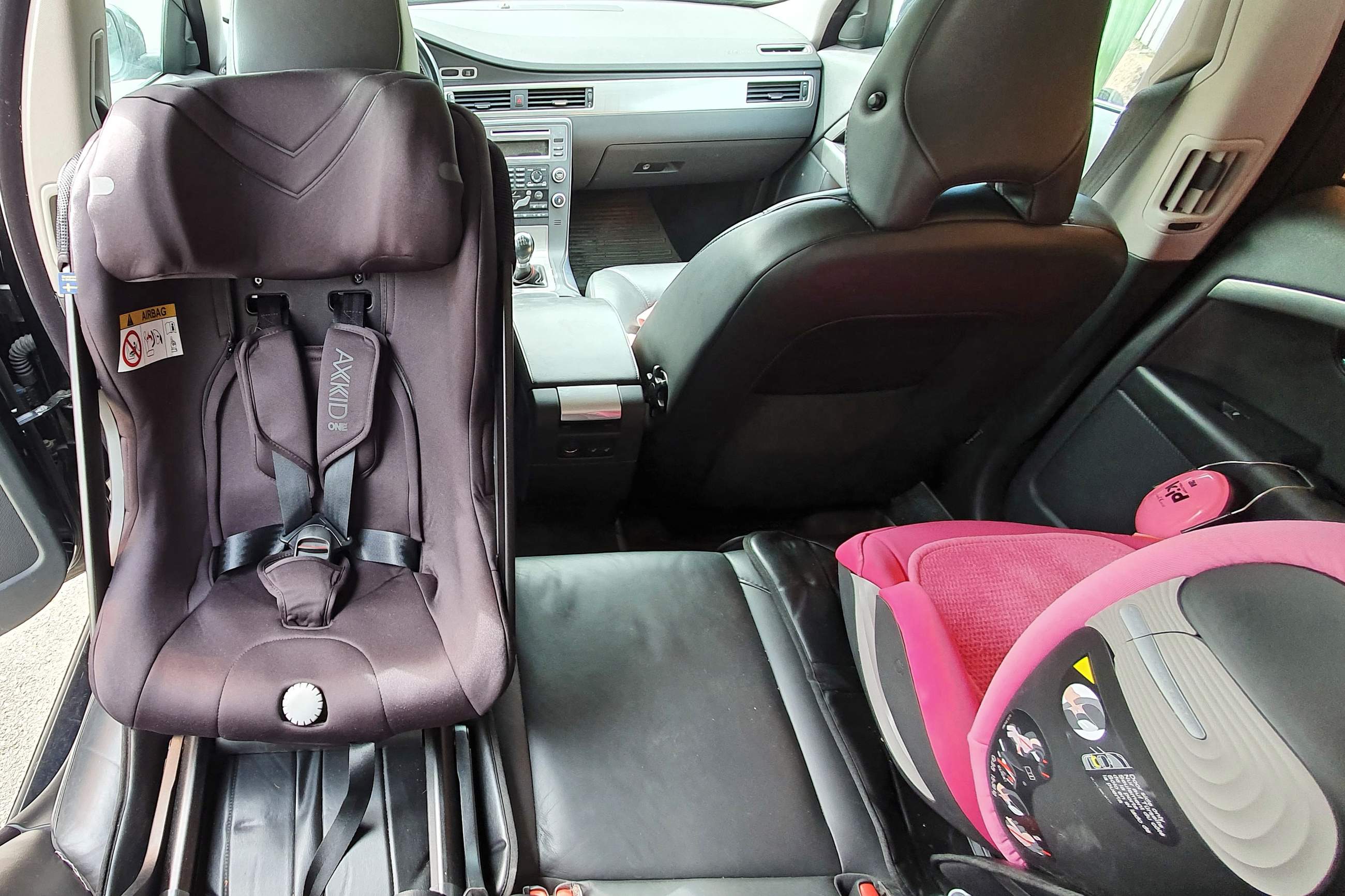 Benutrymmet är verkligen det rymligaste jag varit med om. Både 4 och 6-åringen har gott om plats för ben och fötter och får till och med plats med skor på sig om de vill ha det. Trots det stora benutrymmet för barnen så sitter jag, ca 170 cm lång, skönt framför stolen i vår Volvo V70.