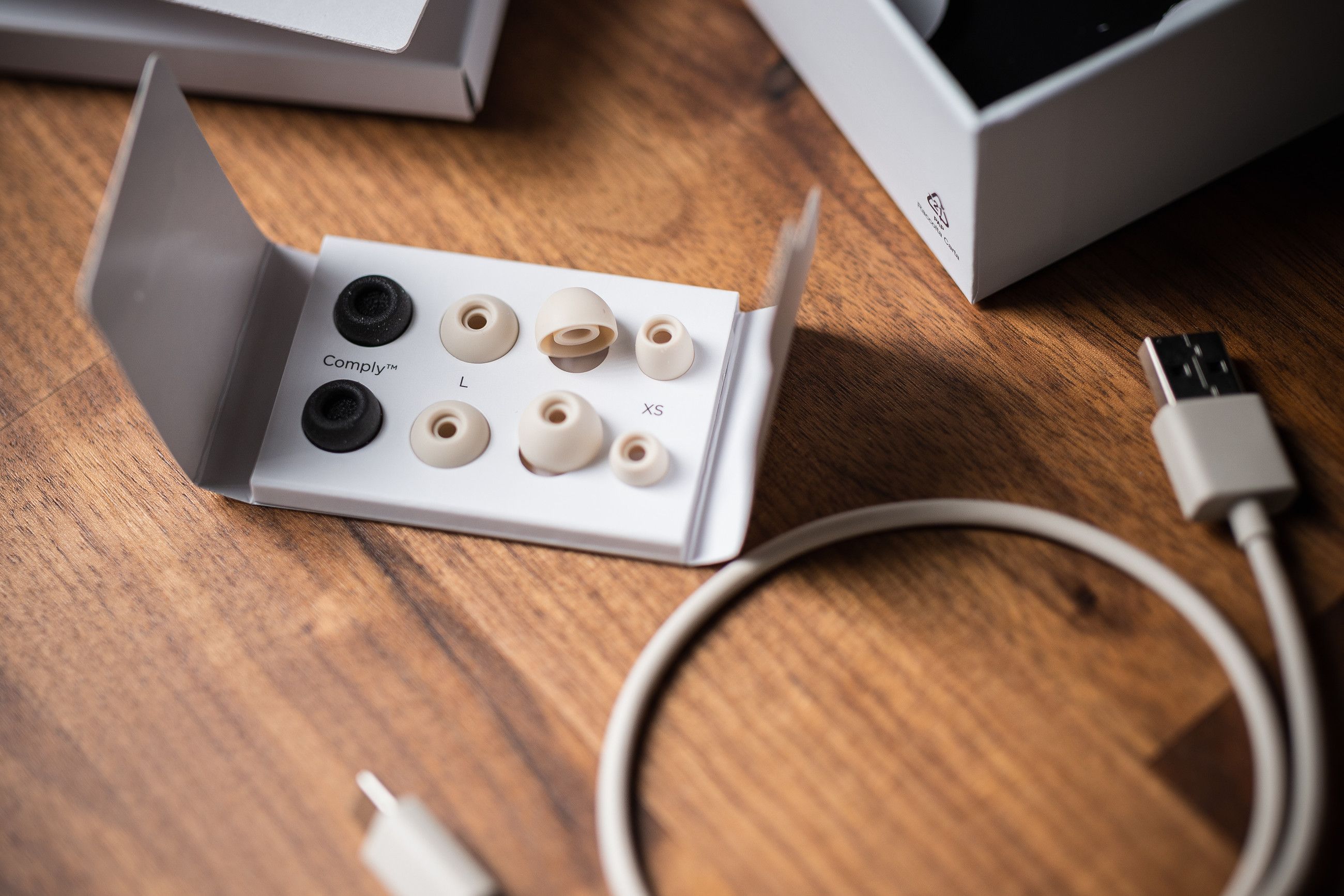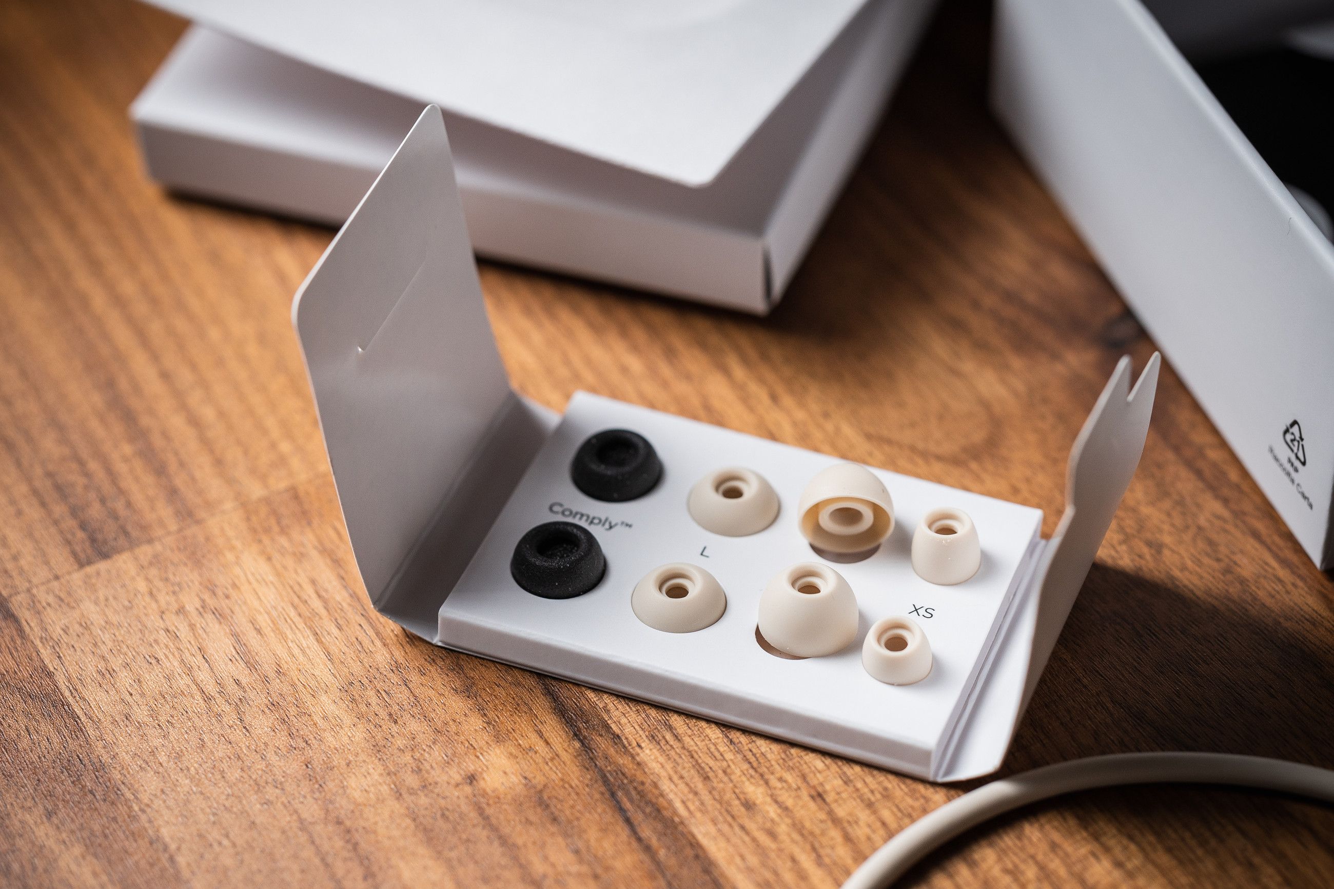 Jag har inte OCD, men mer i riskzonen har jag nog sällan vart än när jag skulle byta proppstorlek. Airpods Pro har en underbart väldesignad metod för att placera och förvara de överblivna öronpropparna men här ska du sitta och pilla och pussla in dem i små hål. Lycka till att få till det utan att paret bredvid inte poppar ut samtidigt. Det finns inte plats för mediumpropparna som sitter på ur kartong, så vart väntas du placera dem om du vill byta mot storlek small? Vilket överseende.