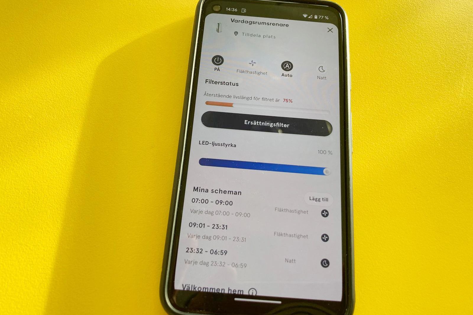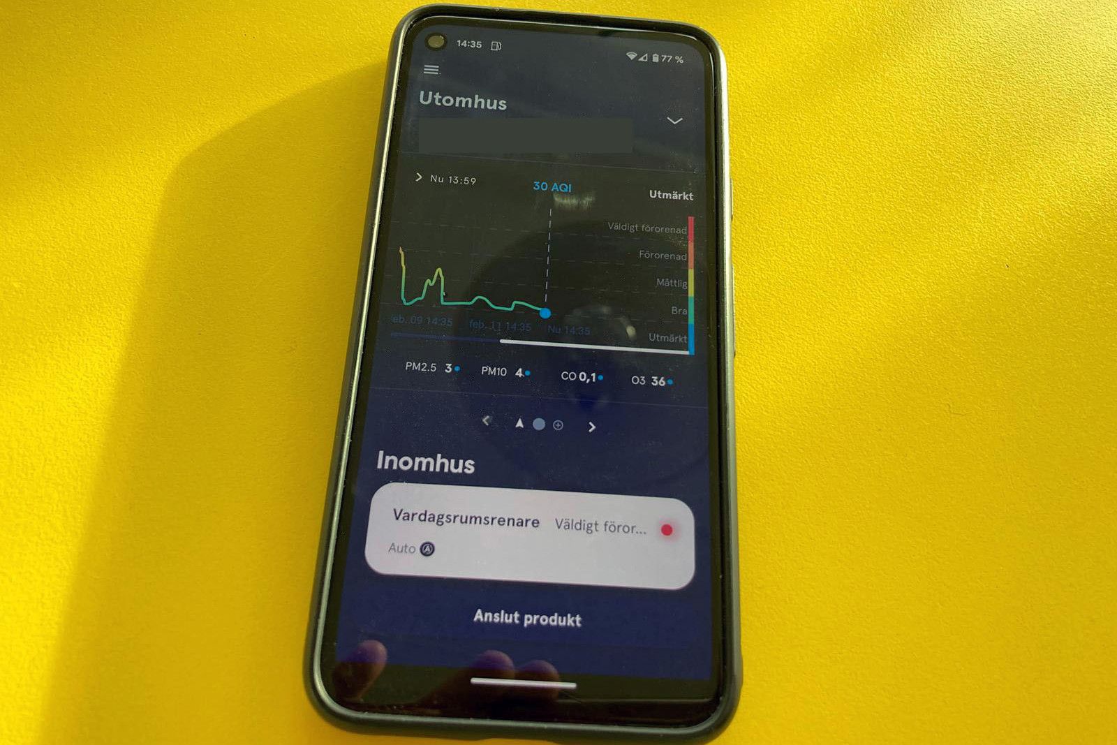 Även appen är välgenomtänkt och enkel. Du ser direkt hur luften är inomhus och den hämtar även realtidsinfo om luftkvalitet utomhus. Så både funktion och system fungerar sömnlöst.