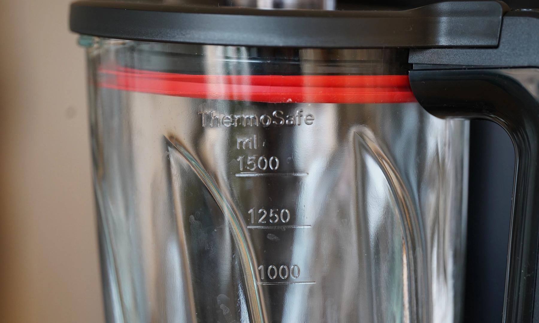 Det första som fångade min uppmärksamhet var den imponerande storleken och kraften hos maskinen. Den är robust och levereras med en tung glaskanna som är temperatursäkrad och kan därför användas för både kalla och varma vätskor.