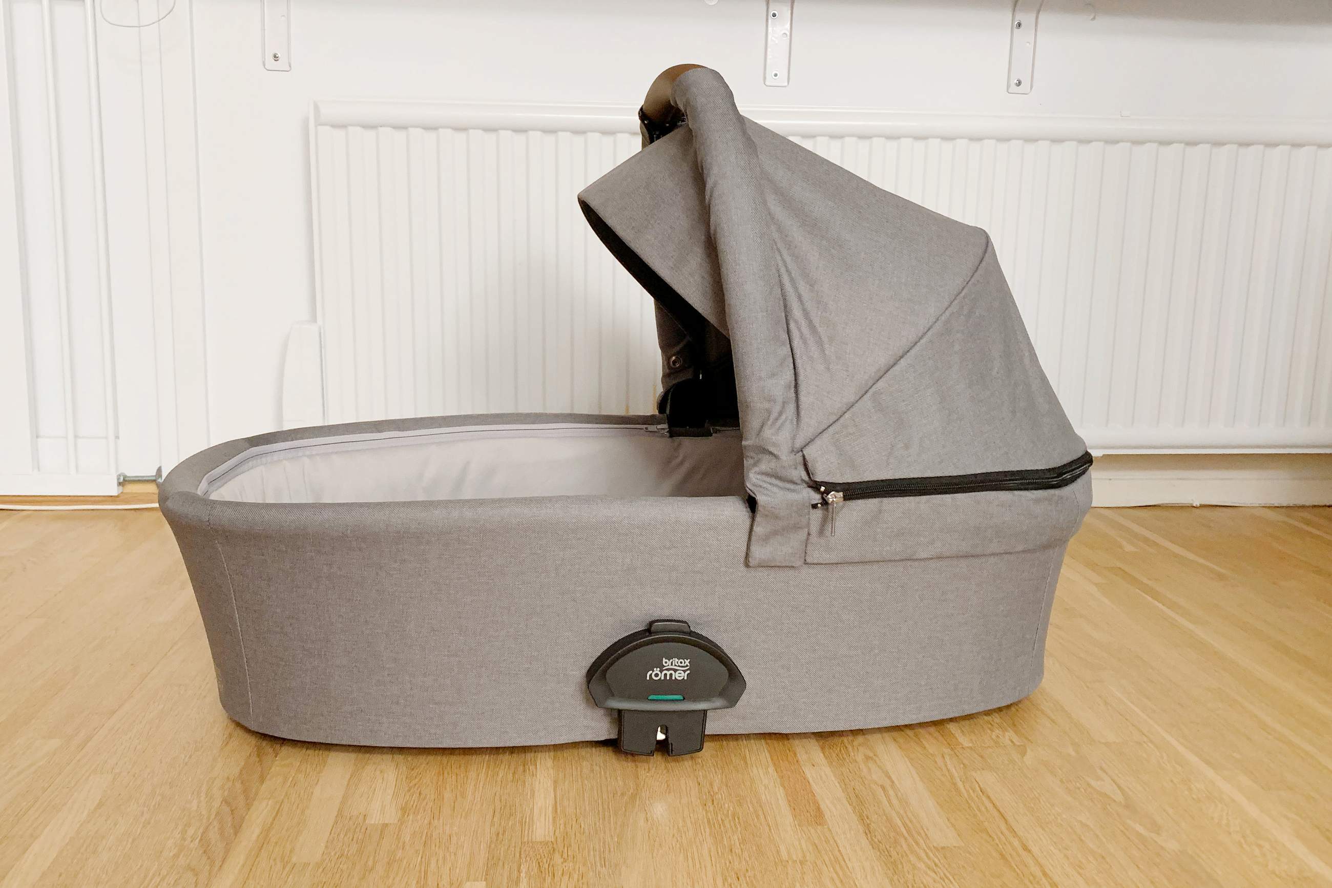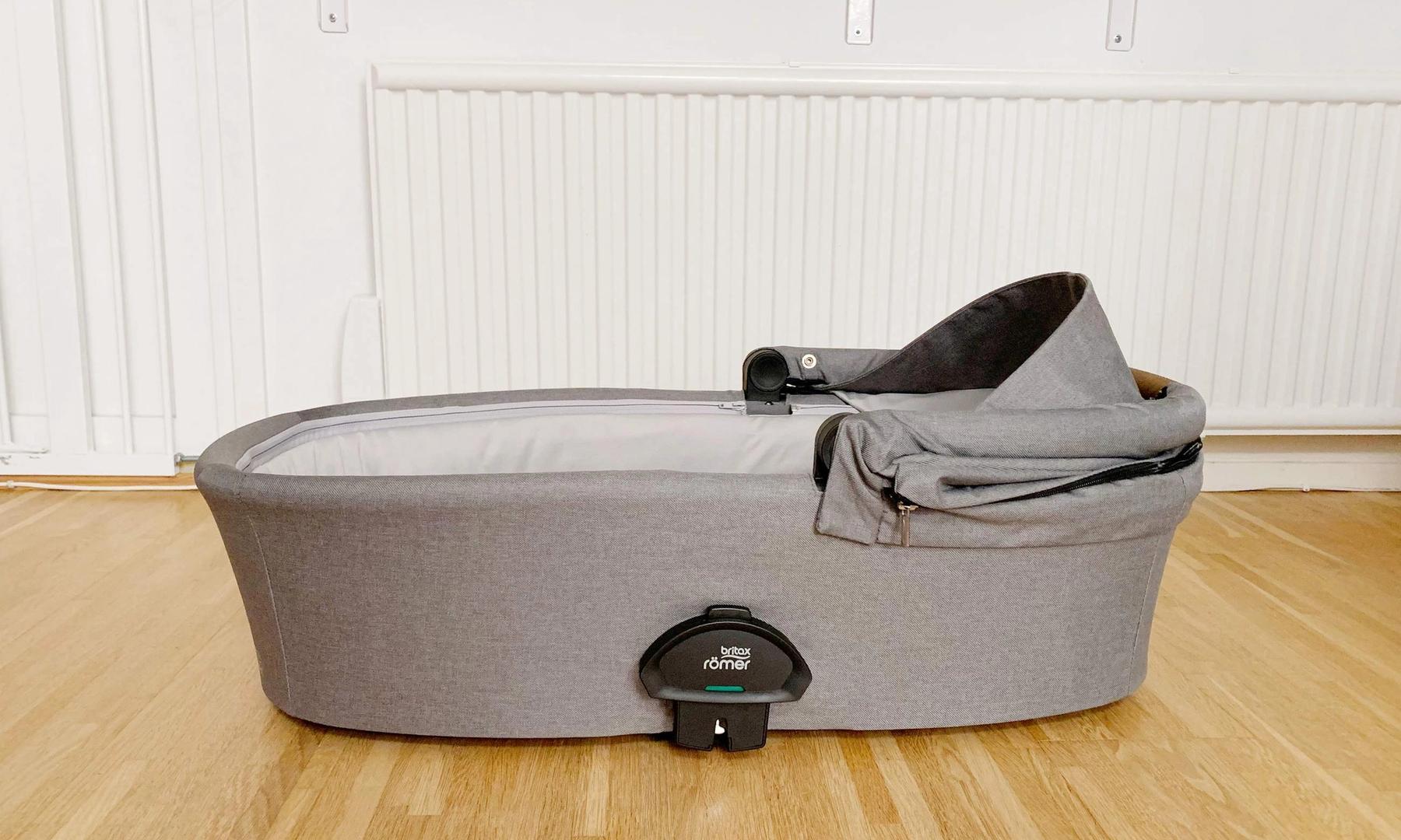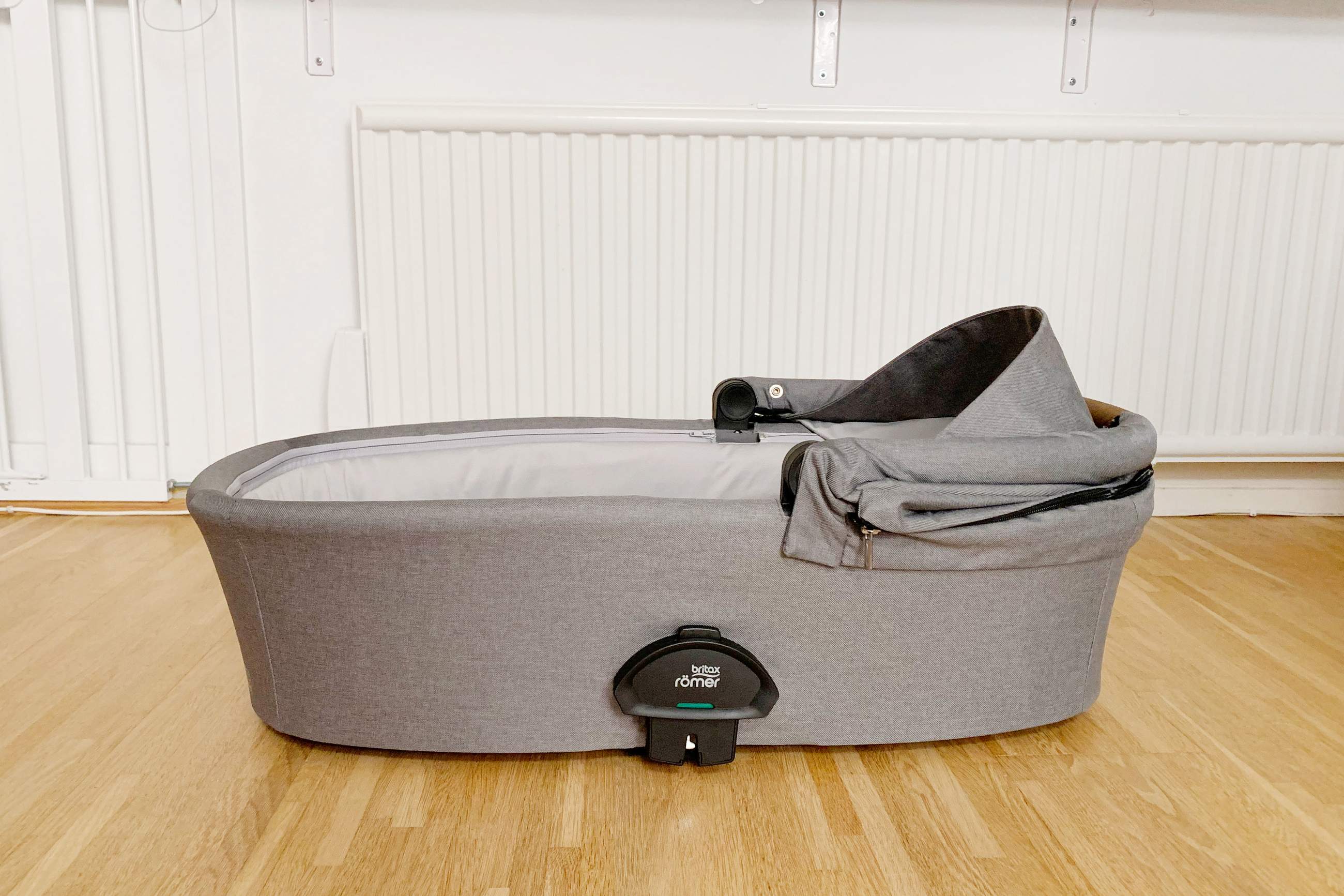 Britax smile III har en mysig och ombonad liggdel. Innertyget går att ta bort enkelt med dragkedja för att tvättas. Suffletten skyddar bra mot solen tack vare den lilla solkepsen. Det enda lite krångliga med suffletten på liggdelen är att man behöver trycka in två knappar, en på vardera sida, samtidigt för att fälla ner suffletten.