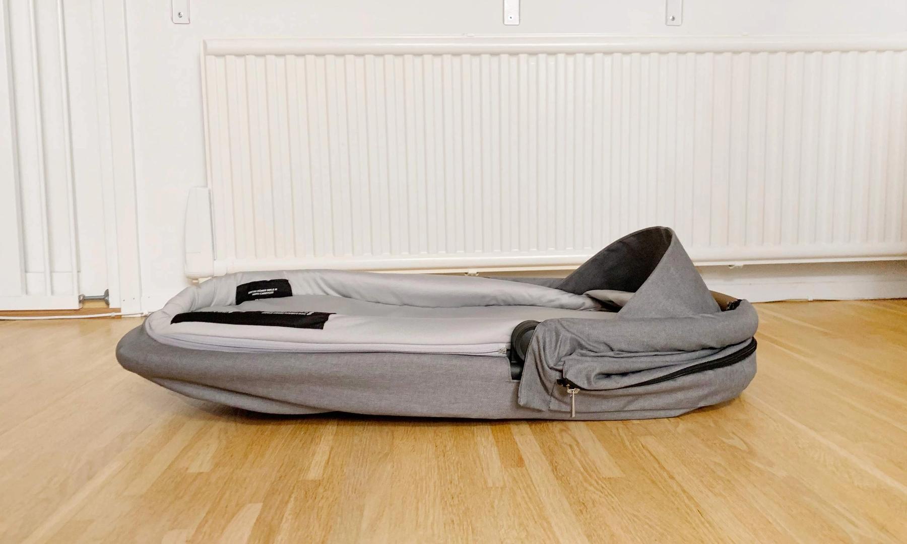 Liggdelen går också att platta ihop så den blir helt platt, jättebra för t.ex. förvaring eller när man ska lasta in den i bilen och vill spara utrymme. Att göra den platt går snabbt och enkelt!