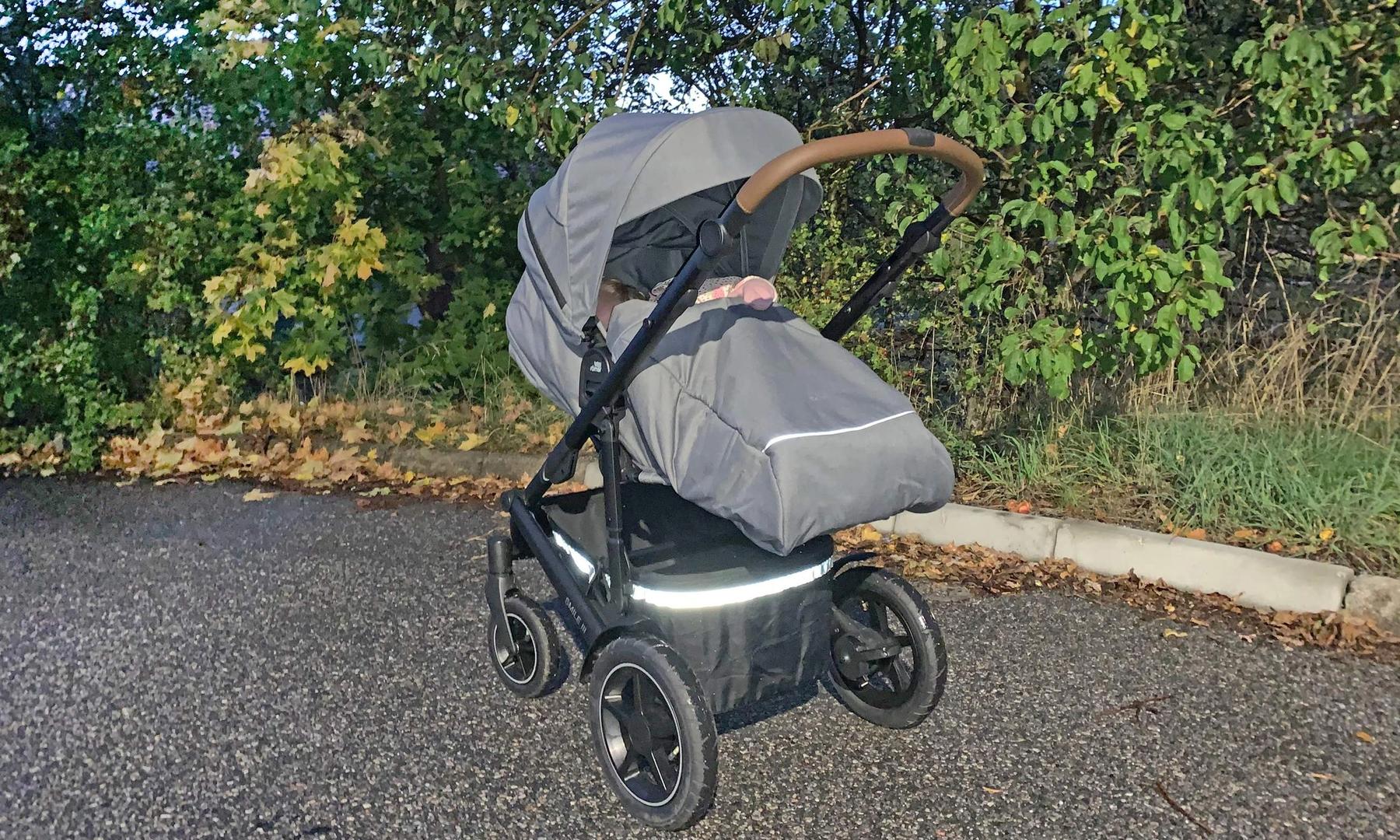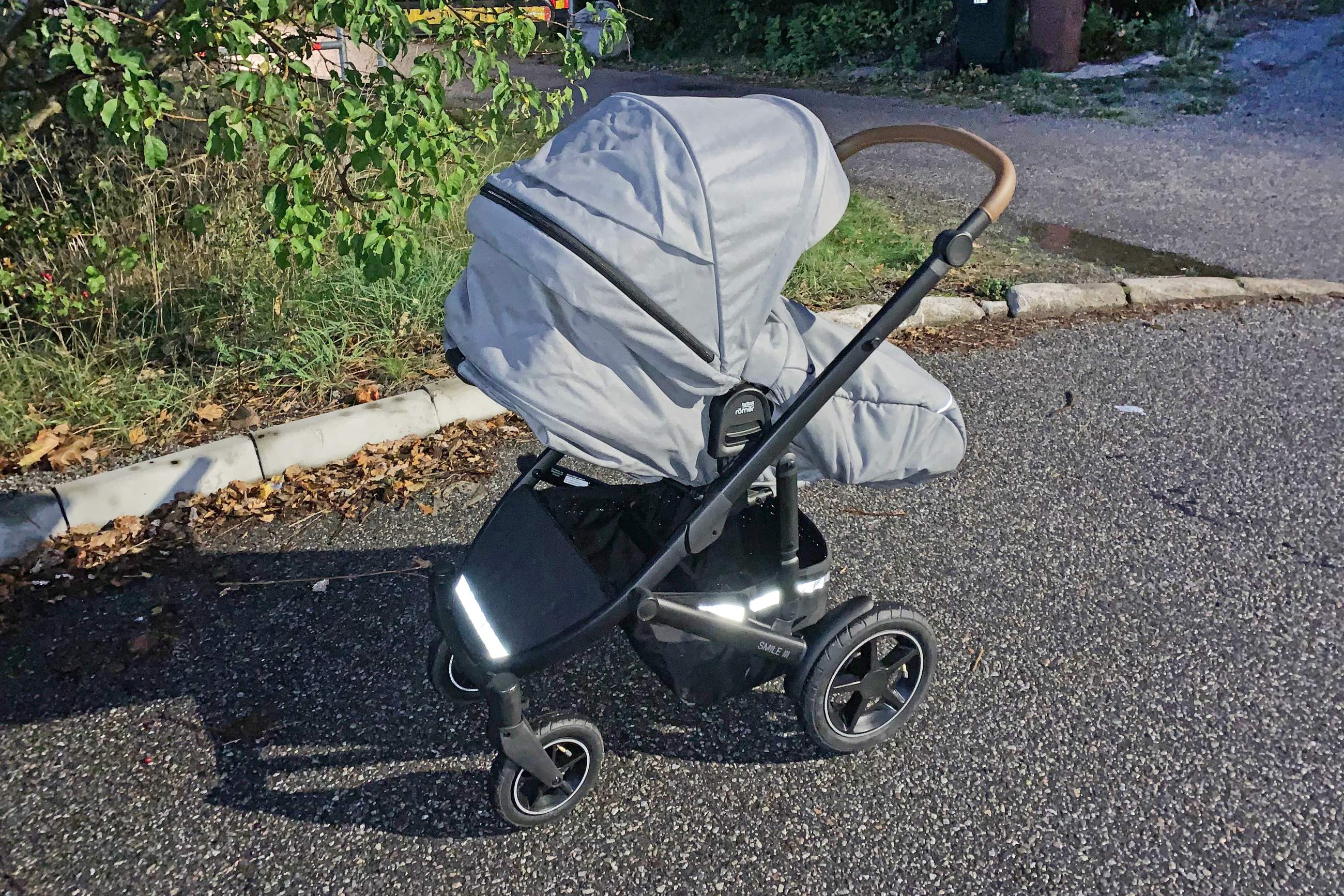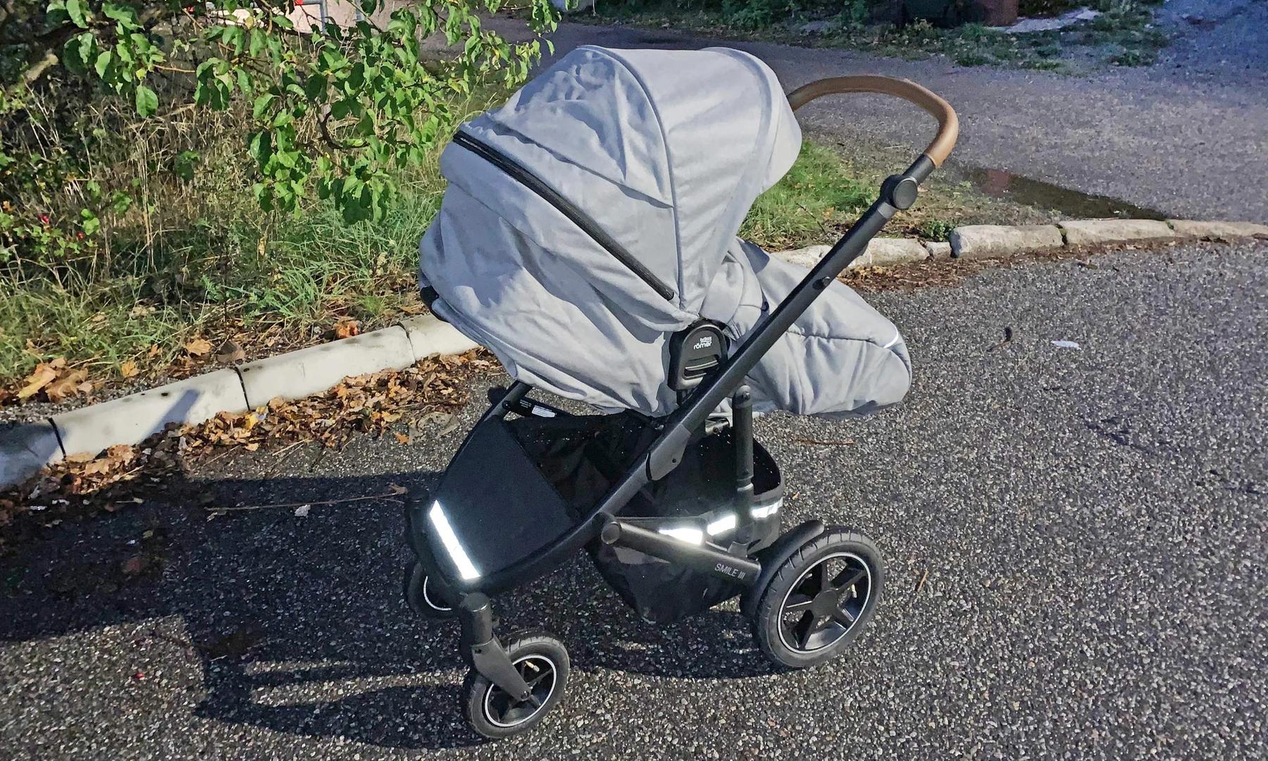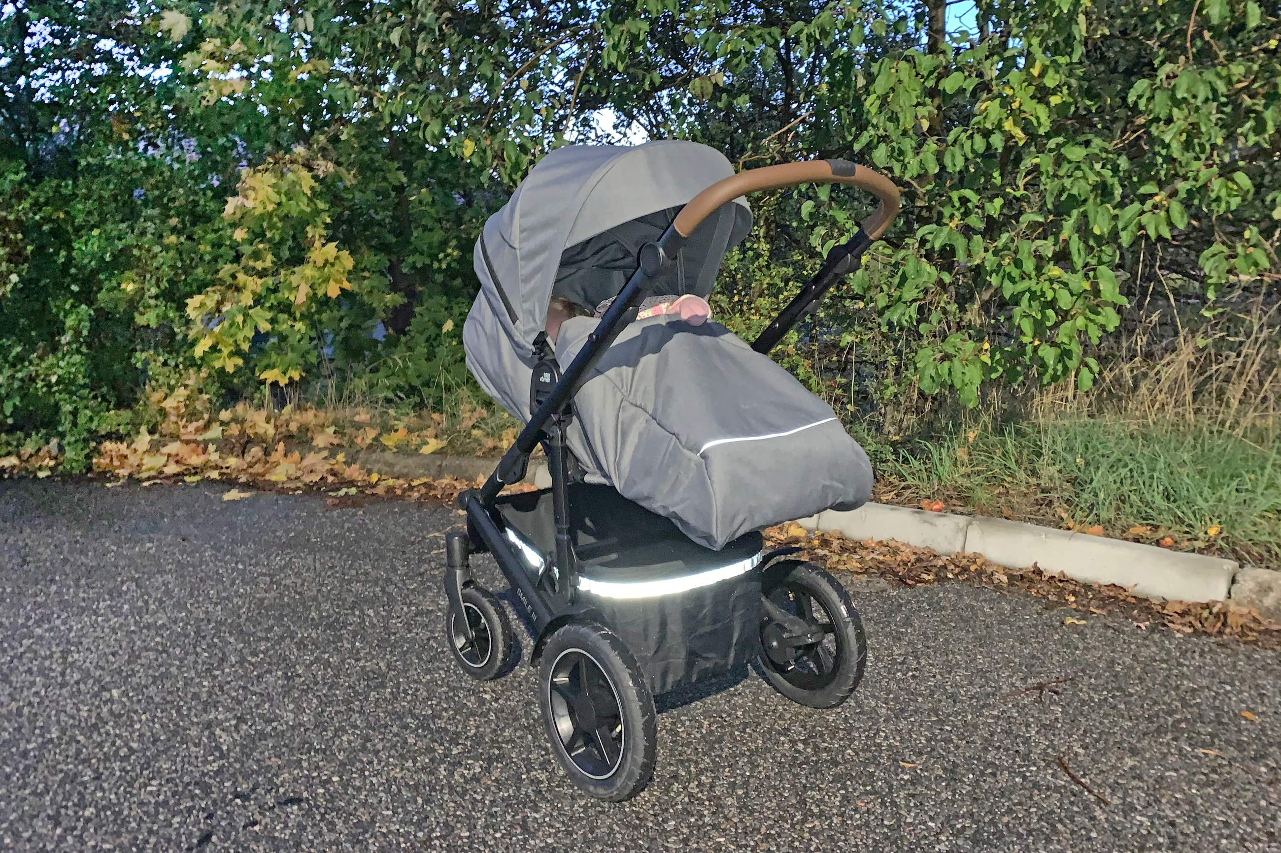 Både chassit och varukorgen har ordentligt med reflexer så vagnen syns från alla håll vilket känns väldigt bra då vi i Sverige har ganska många mörka dagar och kvällar.
