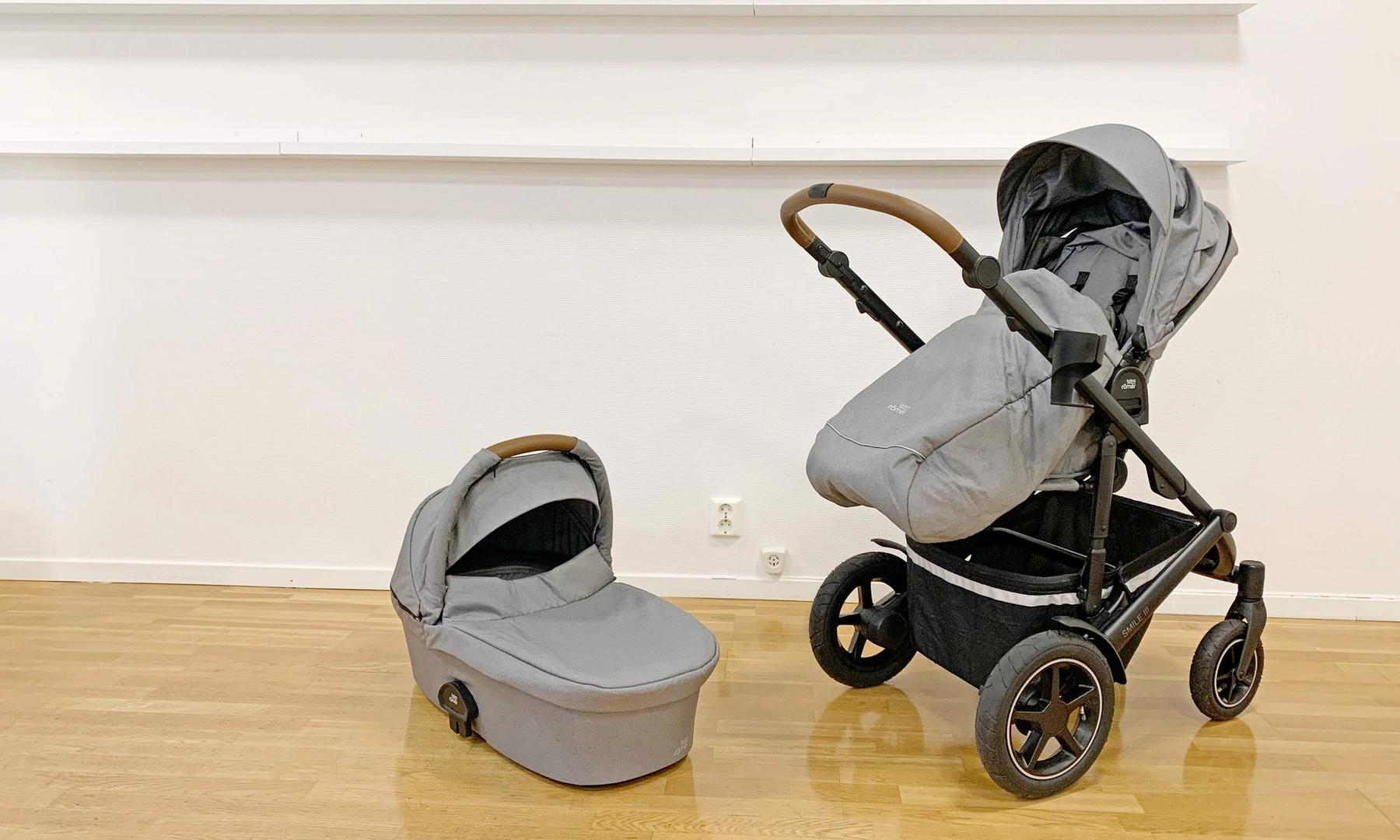 Vindskyddet på liggdelen fästs med magneter vilket gör att man inte riskerar att väcka barnet när man sätter på eller tar av det. Fjädringen på vagnen känns lagom och barnet ligger skönt i liggdelen även på ojämnt underlag.