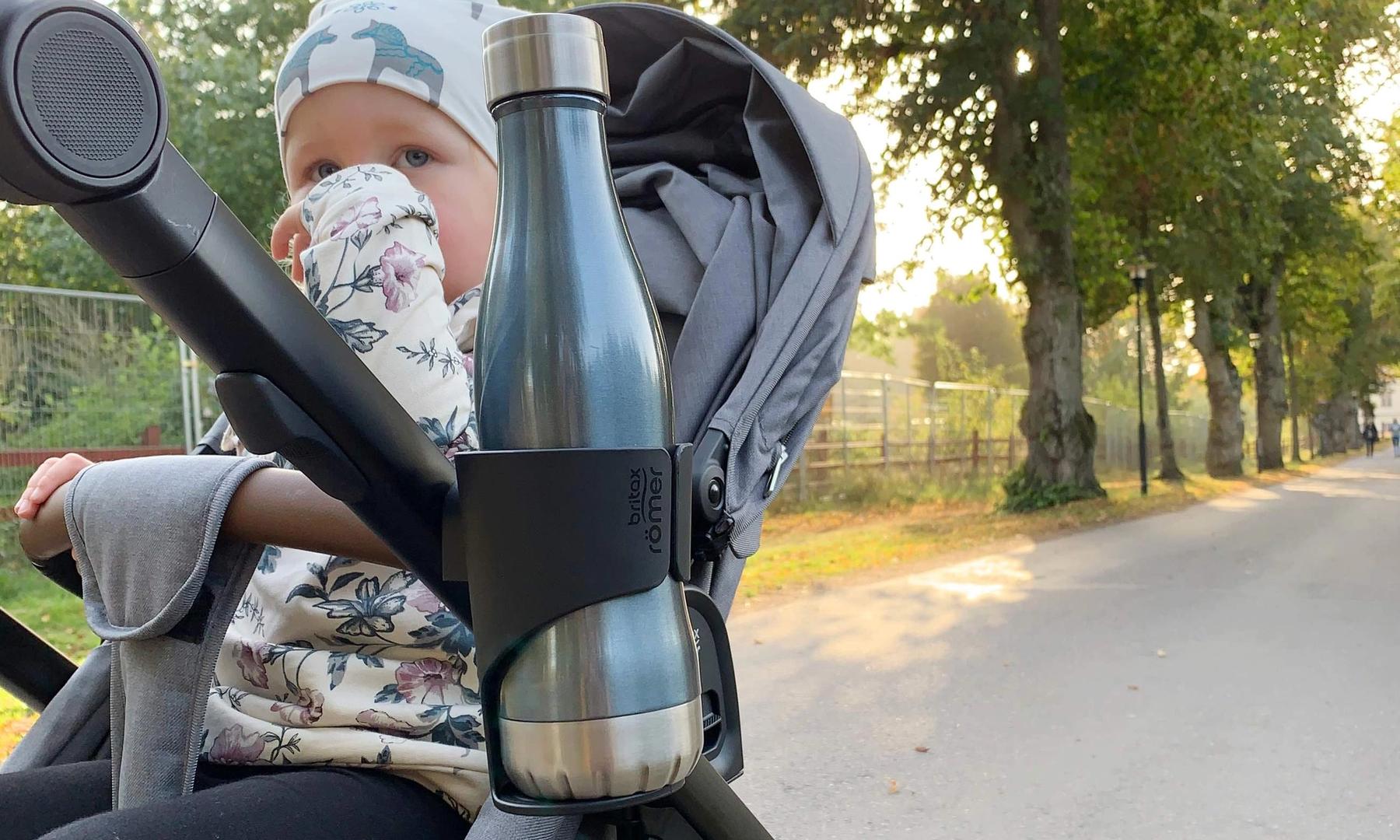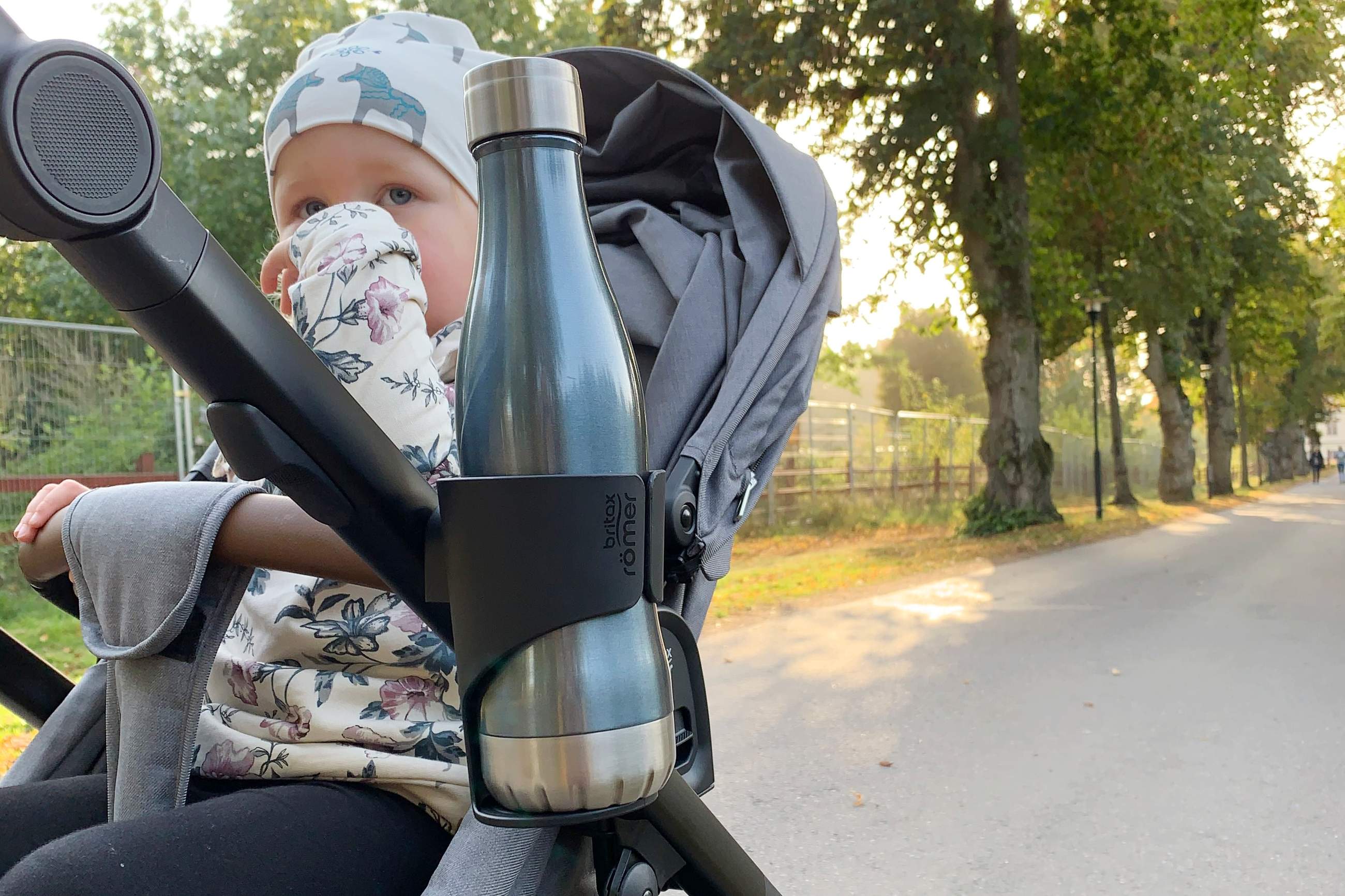 Mugghållaren klickas enkelt fast på valfri sida på chassit där det finns två fästen för detta. Mycket smidigt för mig som alltid har med en vattenflaska på promenaderna. Jag har dock upptäckt att om man har en för hög vattenflaska så snurrar själva mugghållaren runt sitt fäste och flaskan far i backen, men men något lägre flaska sitter den kvar i upprätt läge.