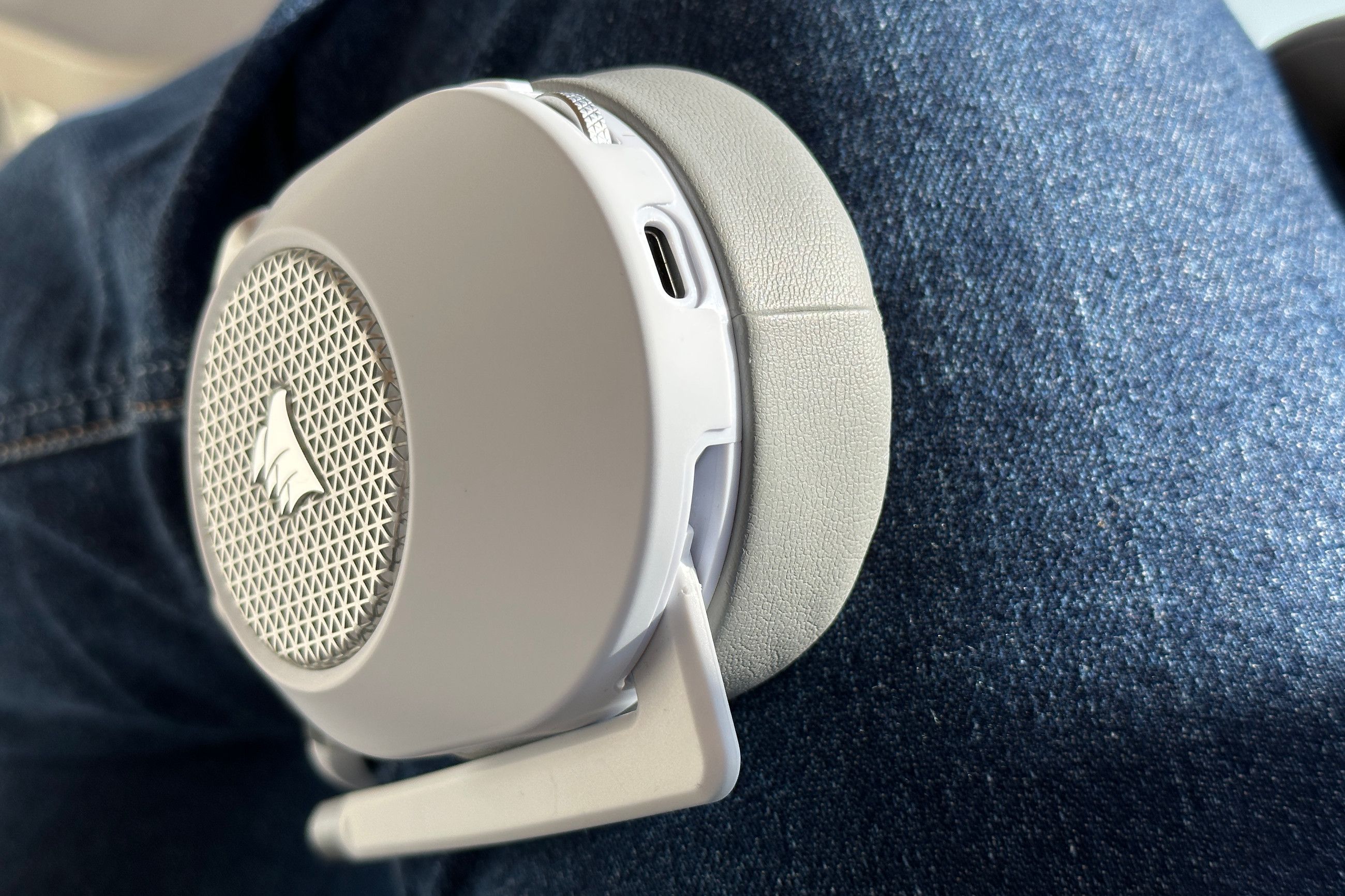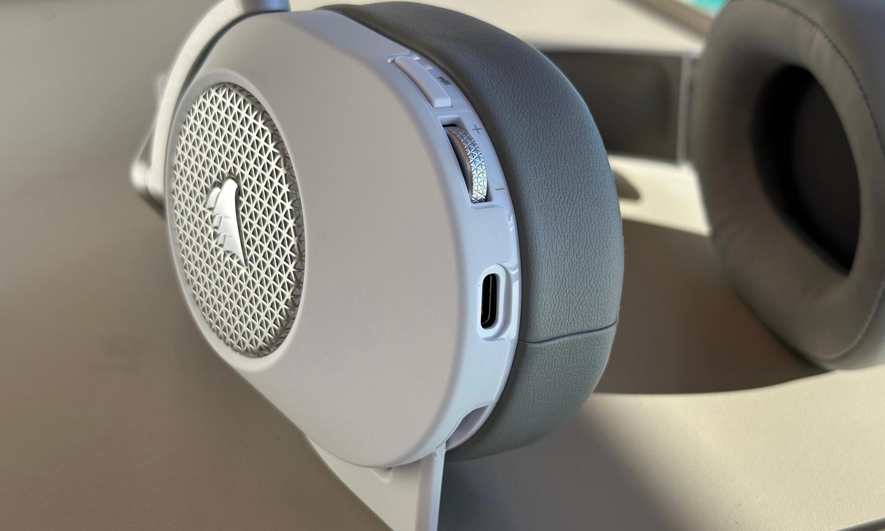 Någon hos Corsair har uppenbart varit framme med en sax och kapat den sladd som tidigare förband dig med din dator på fysiskt mått. Istället hittar vi nu en USB-C-anslutning som du kan använda dels för laddning av hörlurarna, dels för anslutning till dator för att exempelvis kunna uppdatera mjukvaran i hörlurarna.