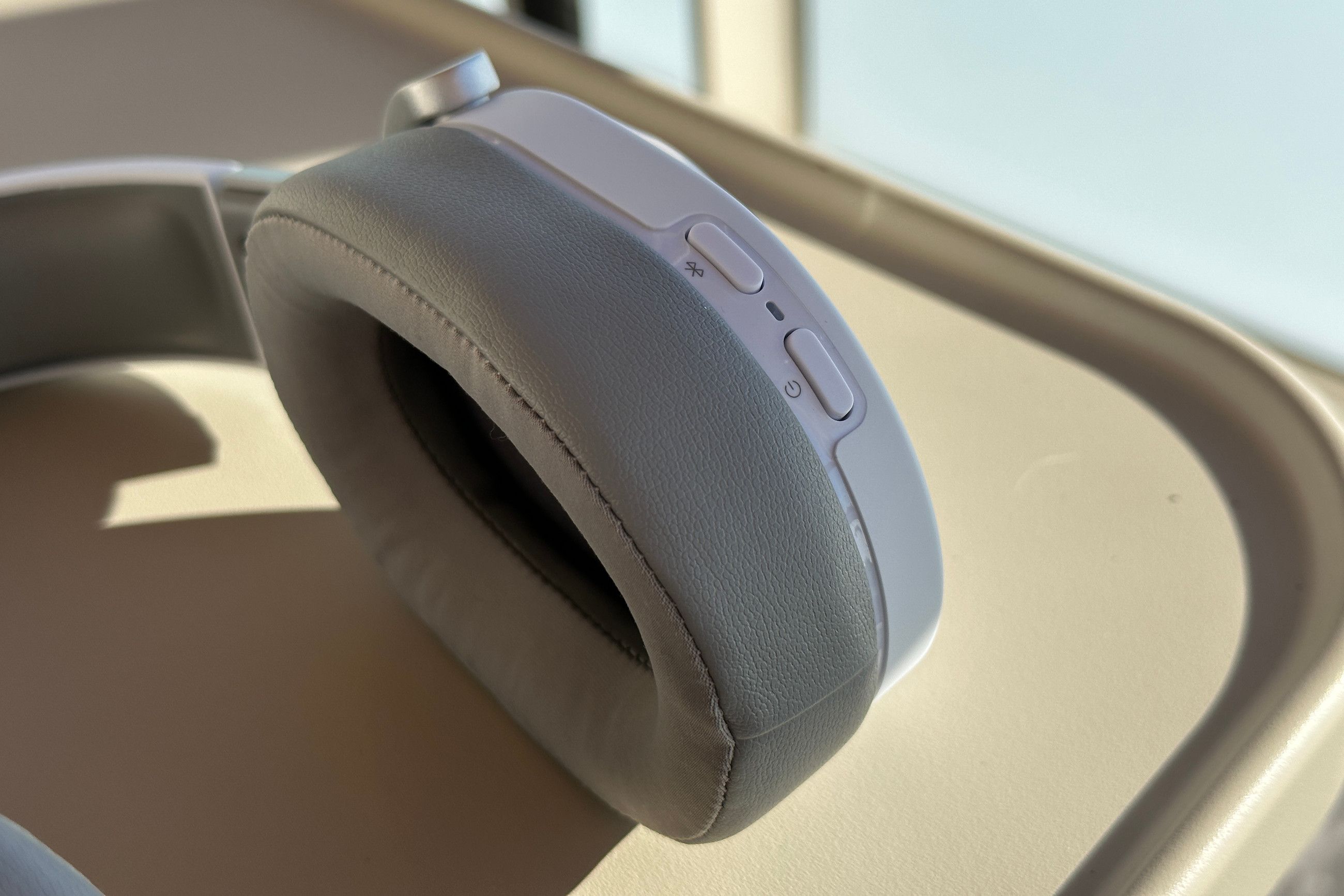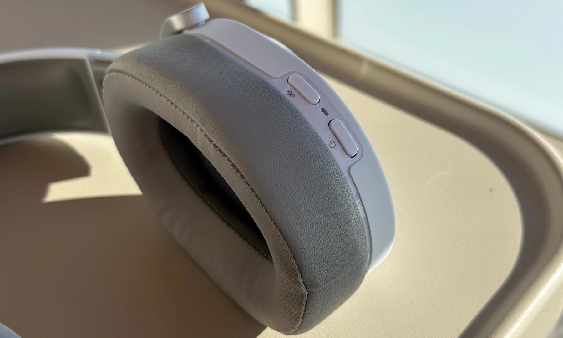 På den vänstra hörluren hittar vi volymreglage, USB-anslutningen samt en knapp för att tysta mikrofonen, något som även går att göra genom att höja upp den lodrät.