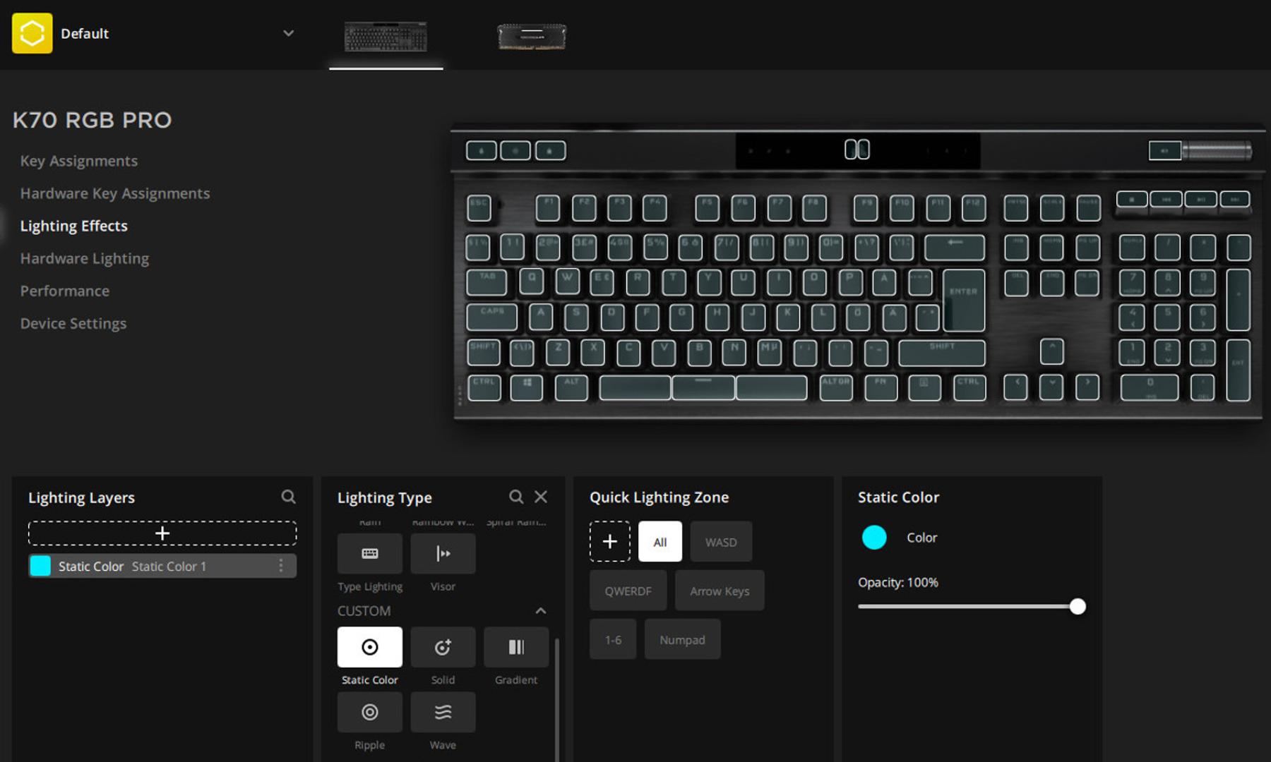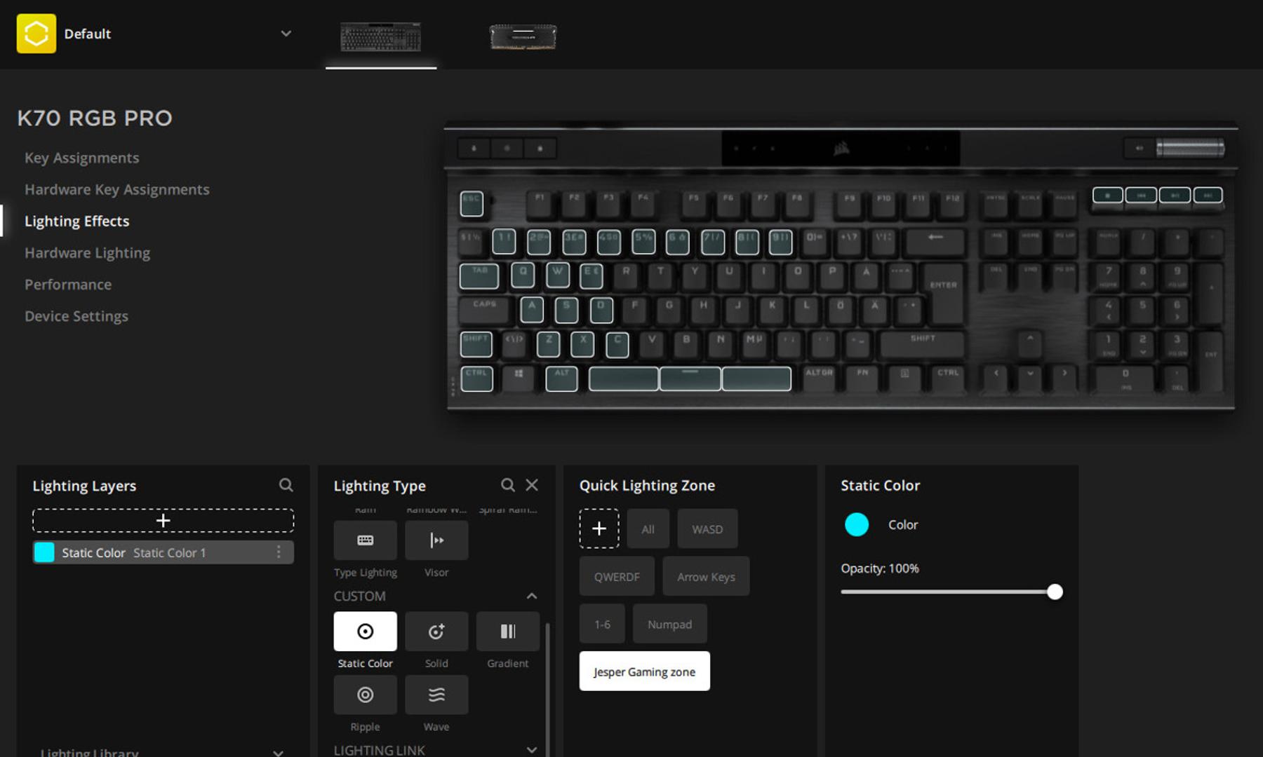 iCue är Corsairs mjukvara för att kunna styra makron, belysning, polling rate (hur snabbt tangenterna svarar) med mera för sina tangentbord.