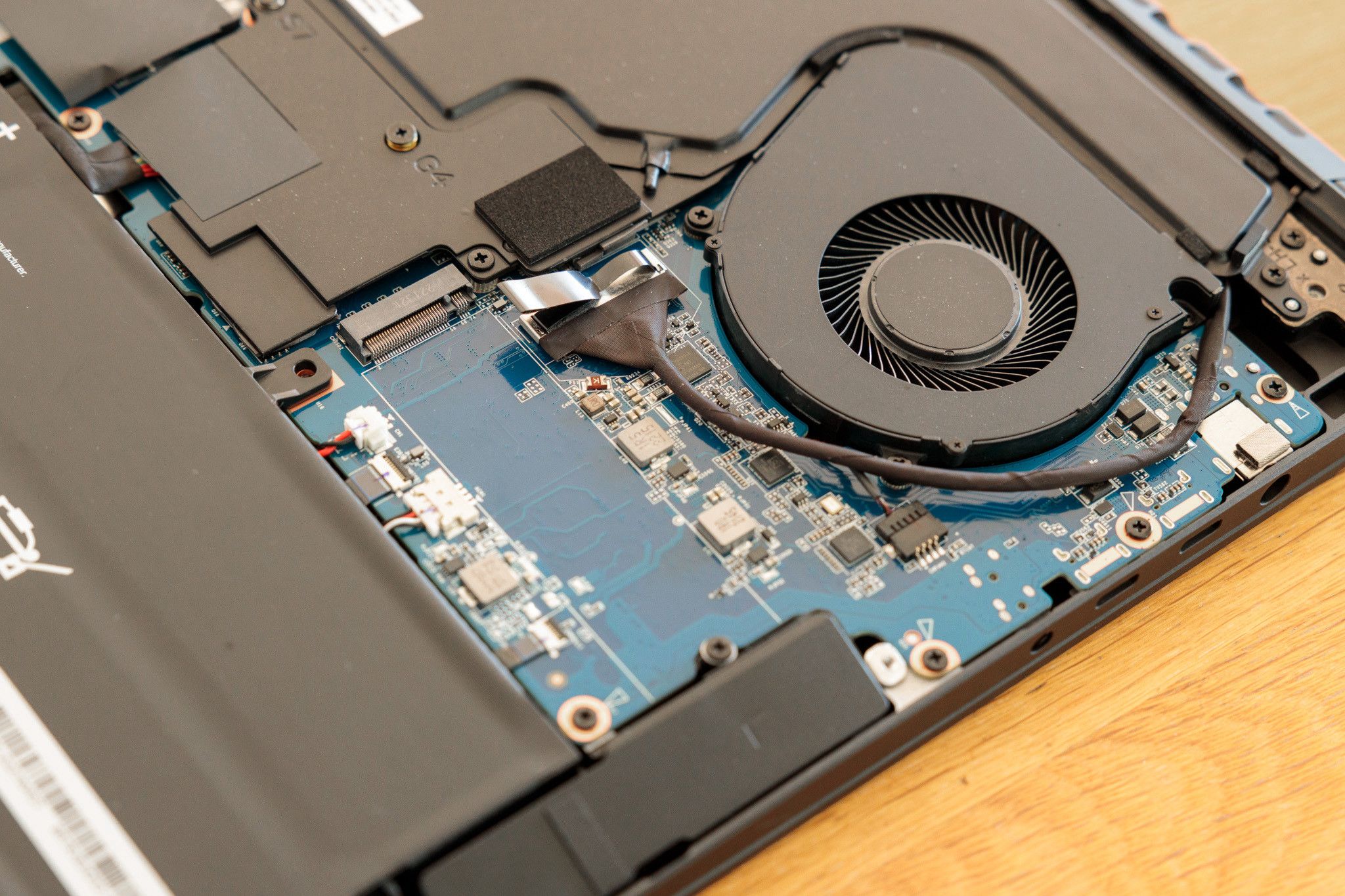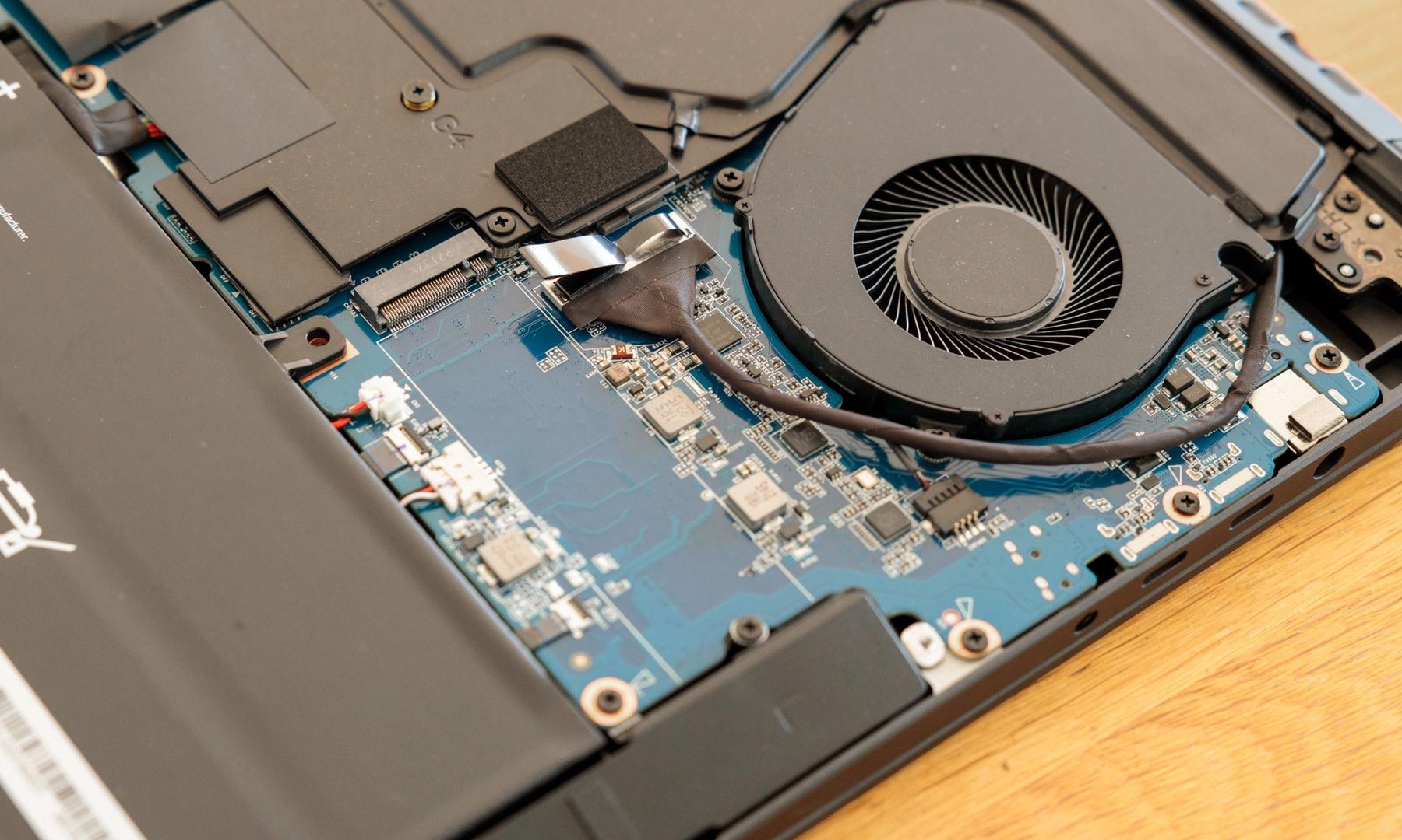 På insidan av chassit hittar vi i vår lånade maskin en AMD Ryzen 9 6900HS och ett Radeon 6800M för grafiken. Även om det är mobilanpassade komponenter så bildas ändå en hel del värme som skall tas hand om i slutänden för att inte riskera degraderad prestanda i längden.