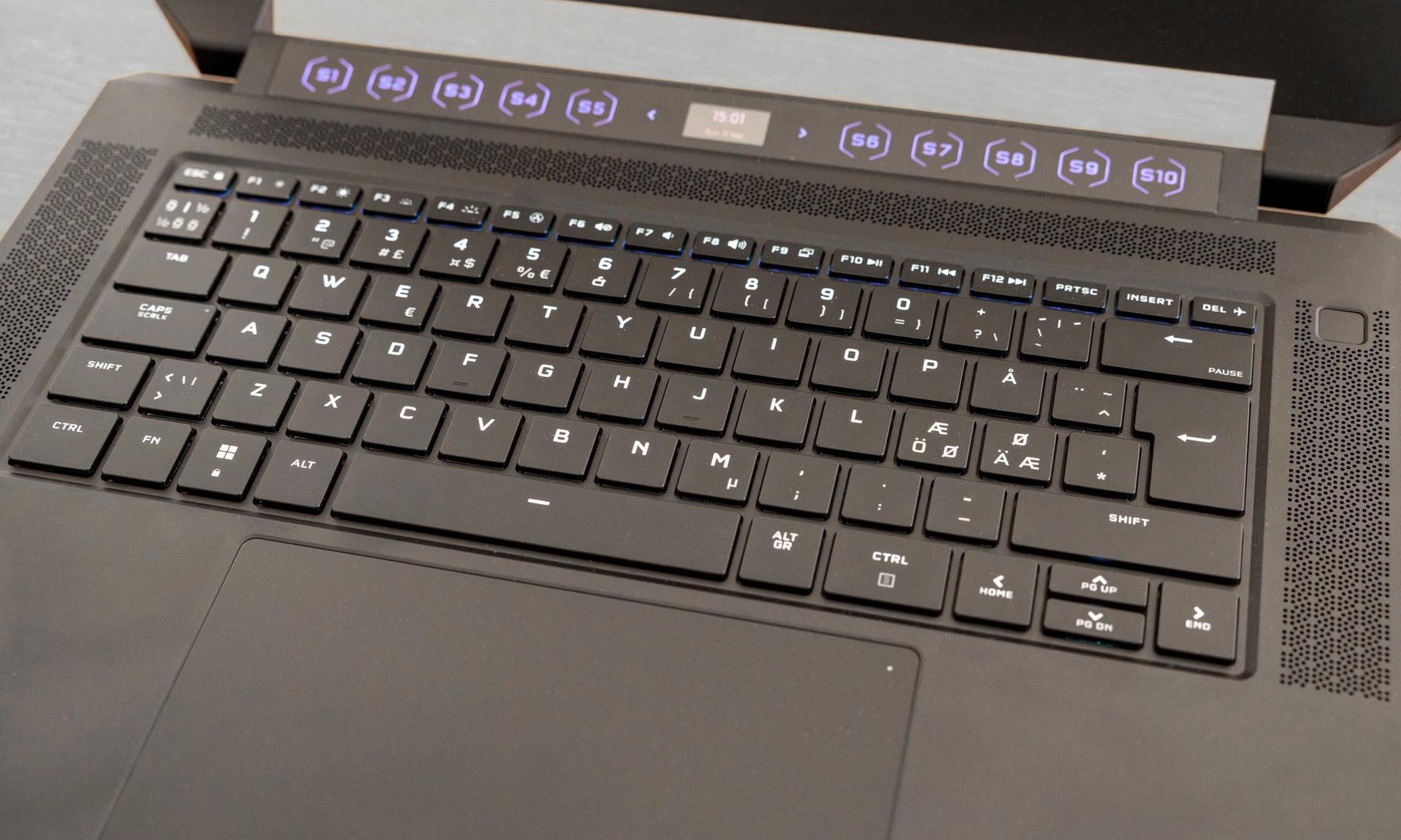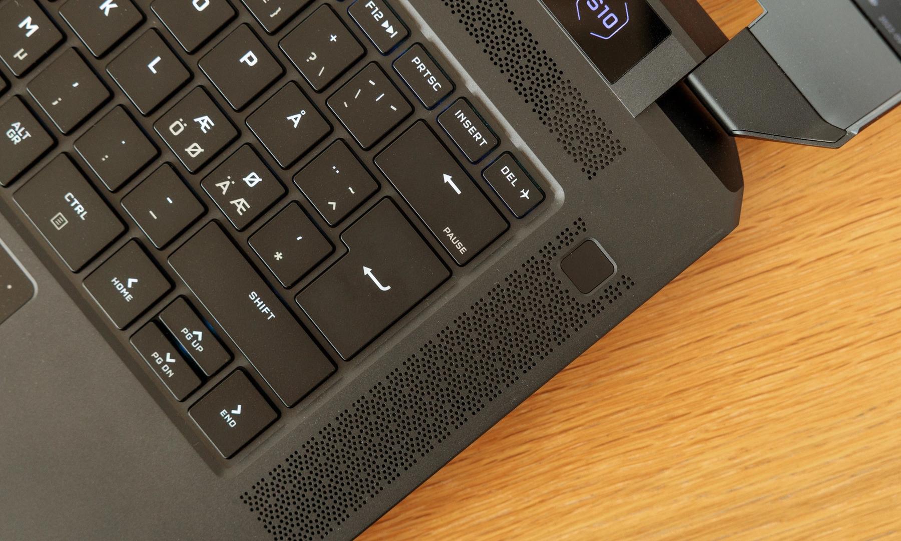 Med en skärm på stadiga 16" och ett aluminiumchassi fyllt till bredden av prestandakomponenter, tillhörande kylning och ett batteri på 99 Wh (eller 6410 mAh om du föredrar det formatet) så blir det här onekligen en stabil pjäs som väger in på 2,4 kg.
