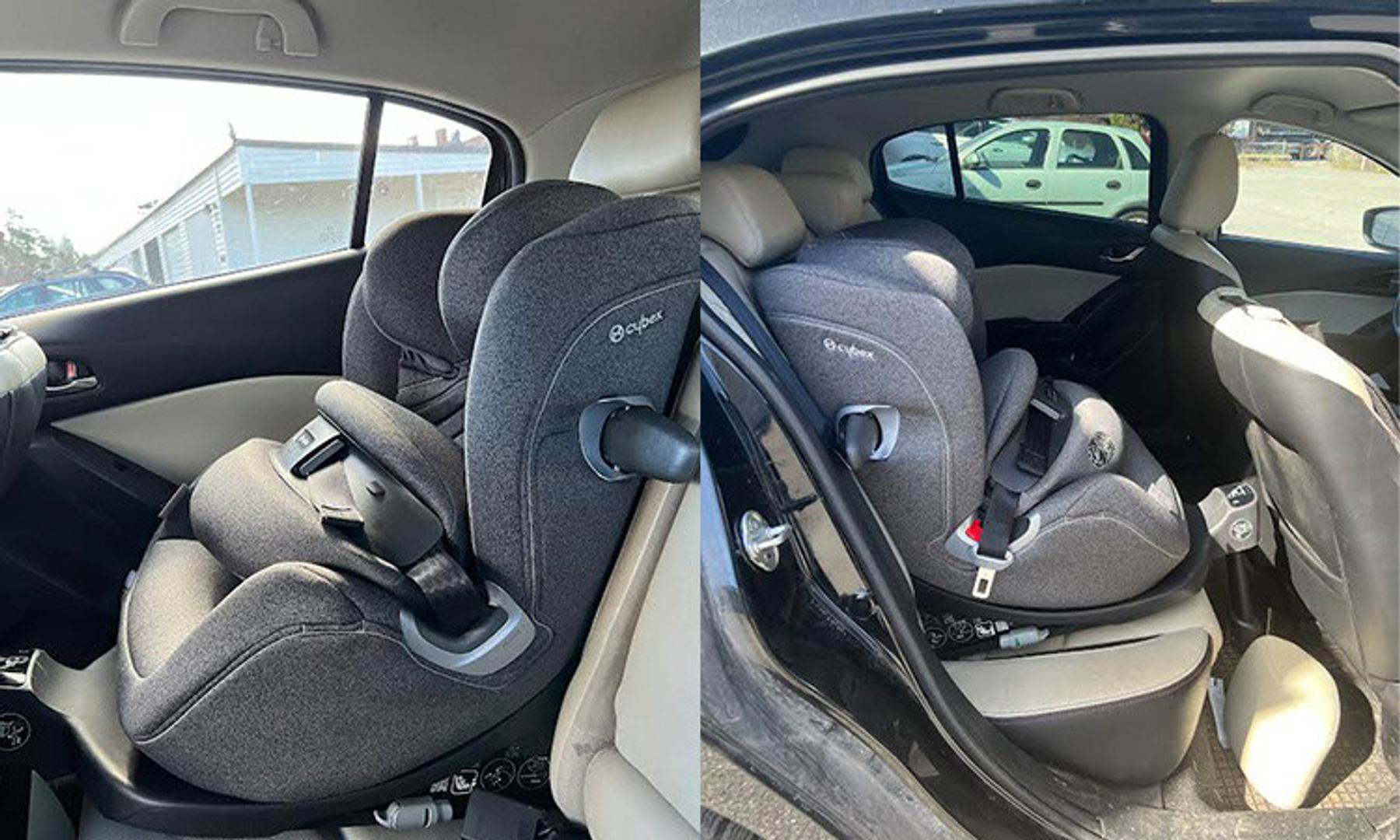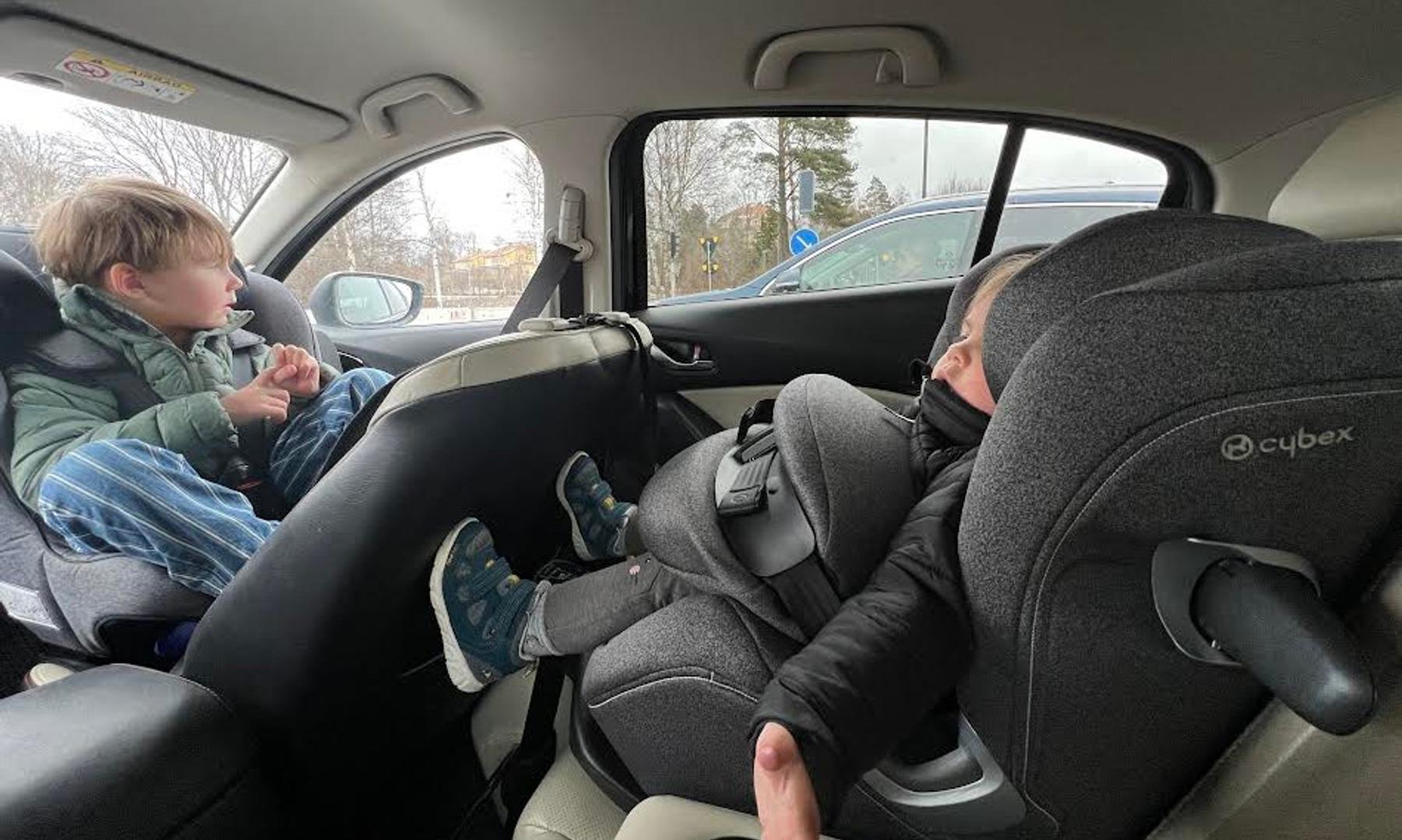 Att stolen tar mindre plats i sätet än en bakåtvänd stol är också ett stort plus. Det gjorde att storebror som sitter bakåtvänd i sätet framför fick mycket mer plats för sina ben, när vi kunde fälla ryggstödet på hans säte mycket mer. Det var också kul för barnen att kunna sitta vända mot varandra för första gången.