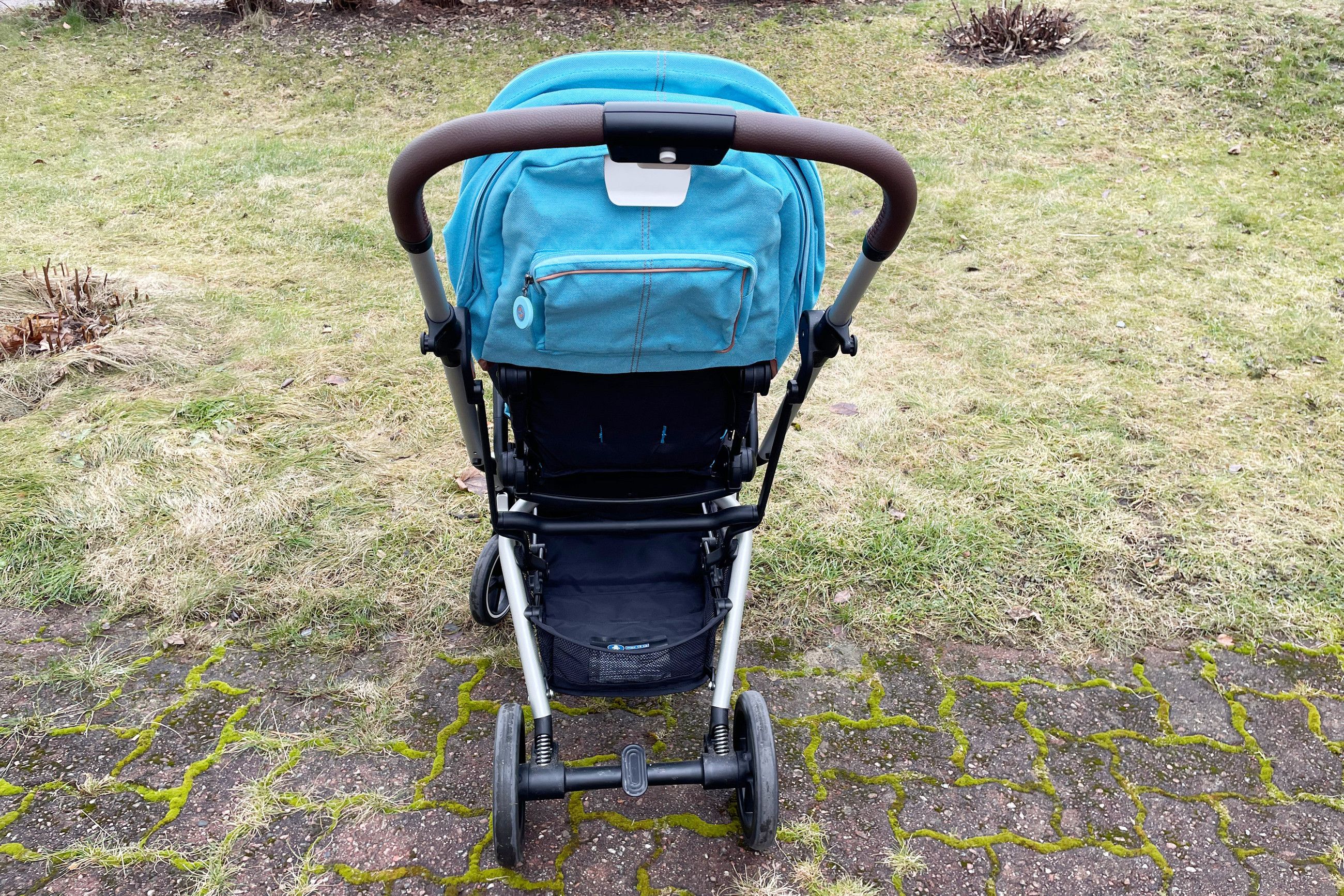 Det finns även ett inbyggt fäste för Cybex mugghållare på chassit. Mycket praktiskt då man enkelt kommer åt sin egen eller barnets vattenflaska under åkturen.