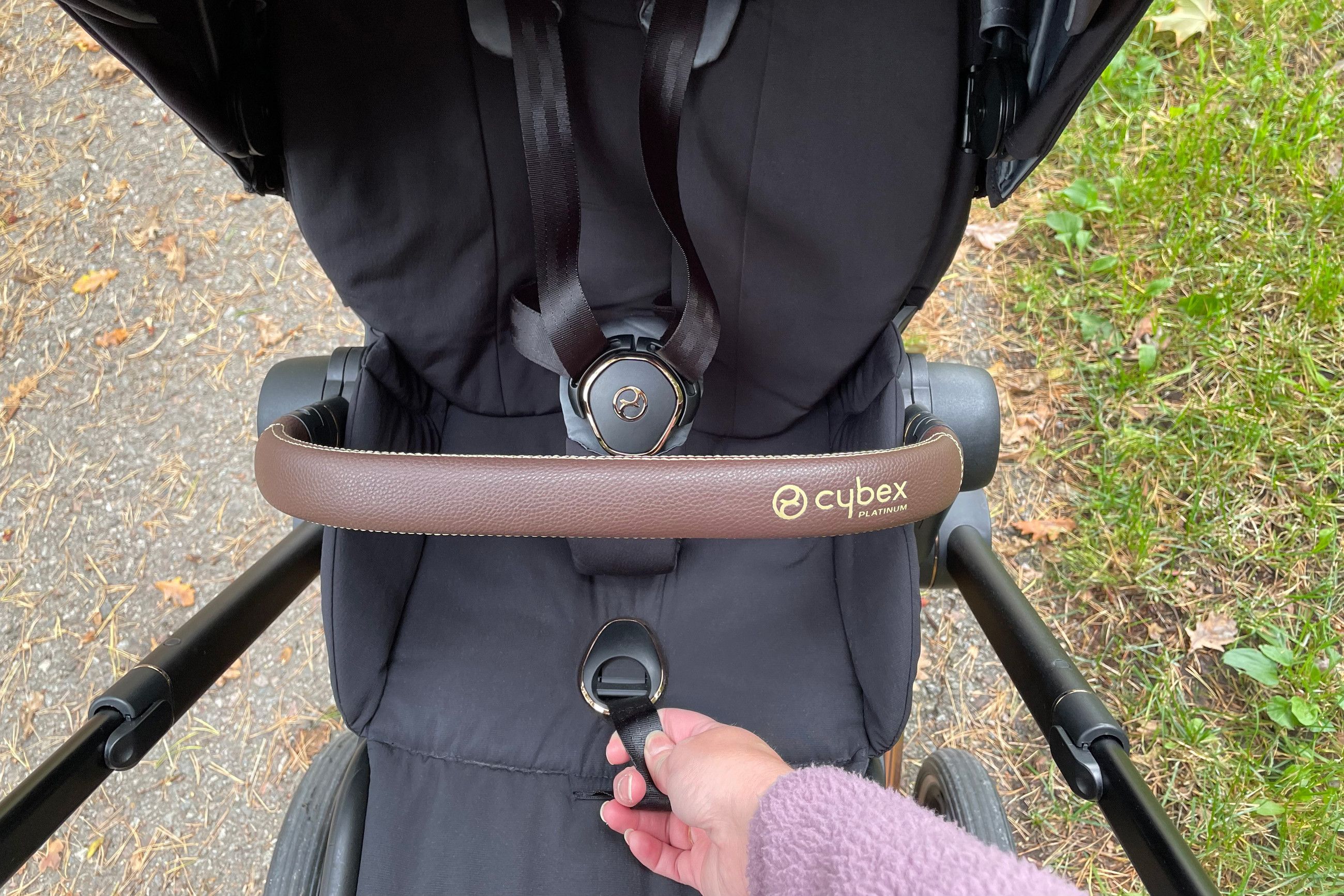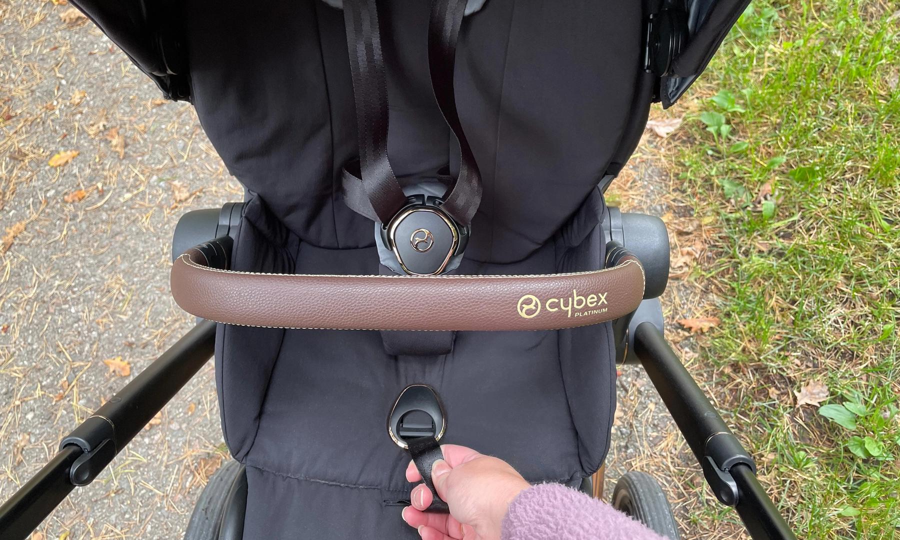 Sittdelen känns dock något öppen på sidorna, jag hade önskat lite högre kanter för att få den att kännas lite mer ombonad. Bygeln är en swingaway-bygel vilket underlättar mycket vid i- och urlastning av barnet.