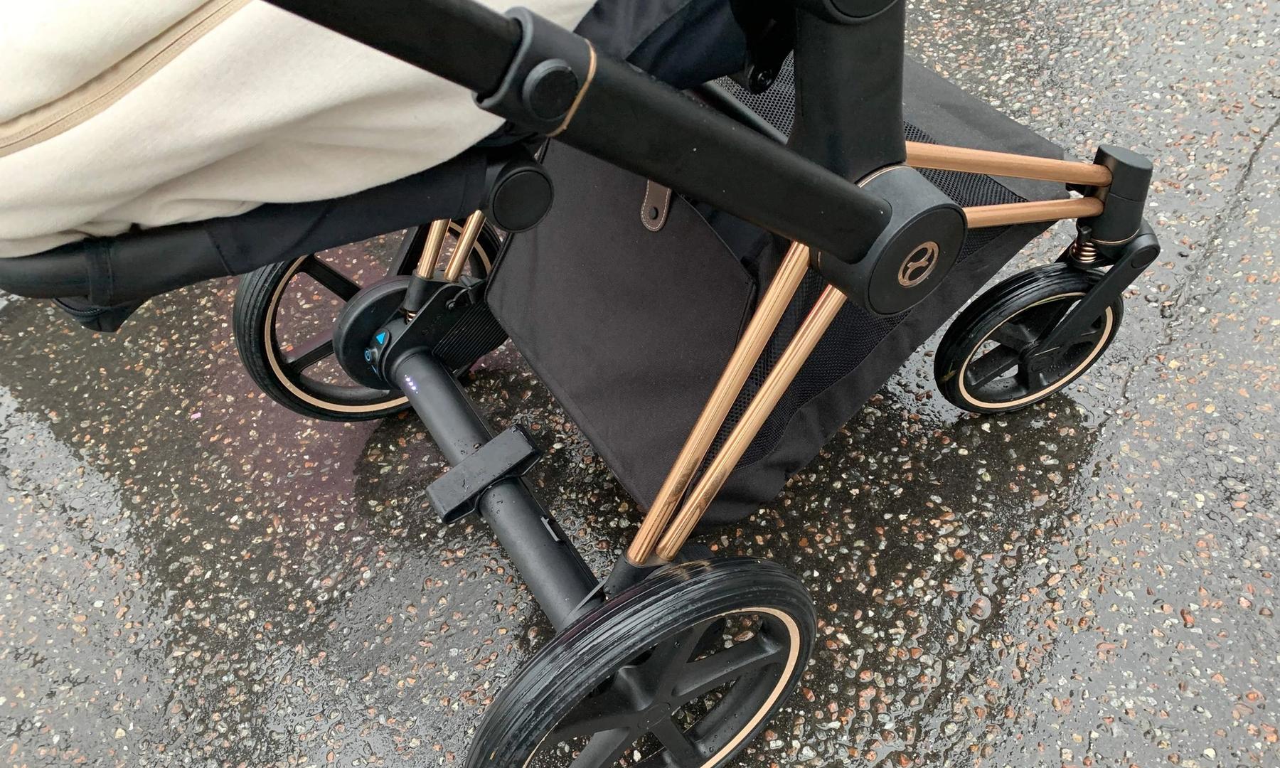 Vagnen jag har testat har ett chassi med roséguldsdetaljer vilket är min personliga favorit just för att det är så ovanligt och utmärkande. Handtaget och bumpern är klädda i mörkbruna läderdetaljer vilket känns väldigt lyxigt. Vagnen i sin helhet känns stadig och robust, en vagn som har en lite dyrare prislapp men som jag tycker är ganska rimlig ändå med tanke på vad man får för priset.
