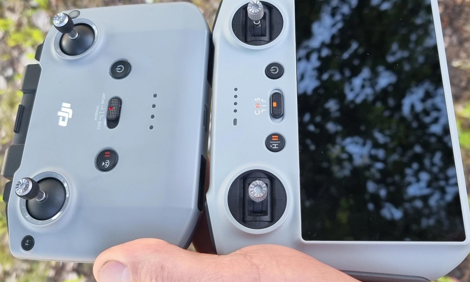 Skärmen är ljusstark och man har därtill några extra knappar och rullhjul på DJI RC som den vanliga handkontrollen saknar.