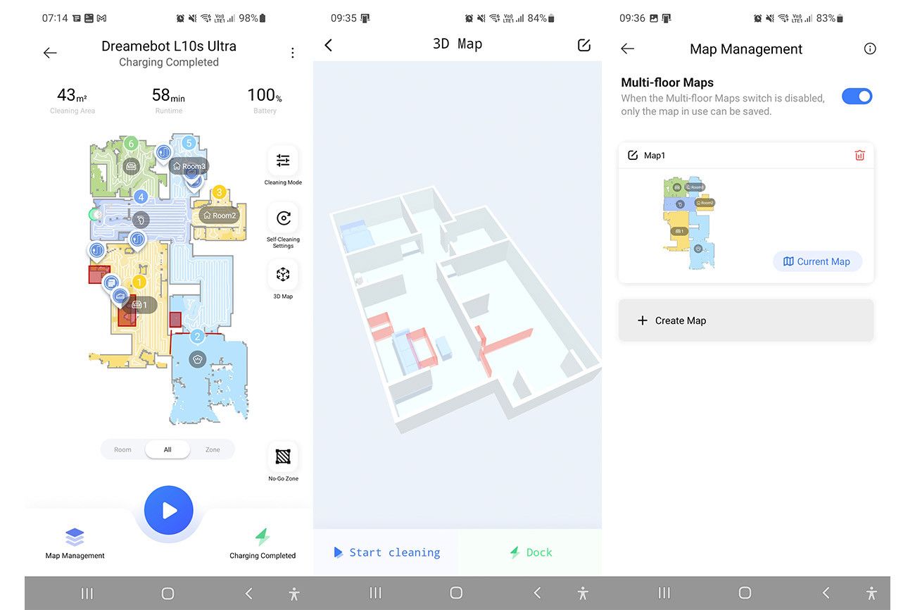 Vid första användning får man en fråga om robotdammsugaren skall göra en navigering av våningsplanet för att måla upp en kartbild i appen. Efter att detta är genomfört kan man enkelt lägga till No Go Zone, Virtuell vägg samt No-mop zone. Det sistnämnda skapar mer problem än nytta under mina tester i med att L10s Ultra upptäcker själv var mattorna är och lyfter moppborstarna samt ökar suget automatiskt på dessa.