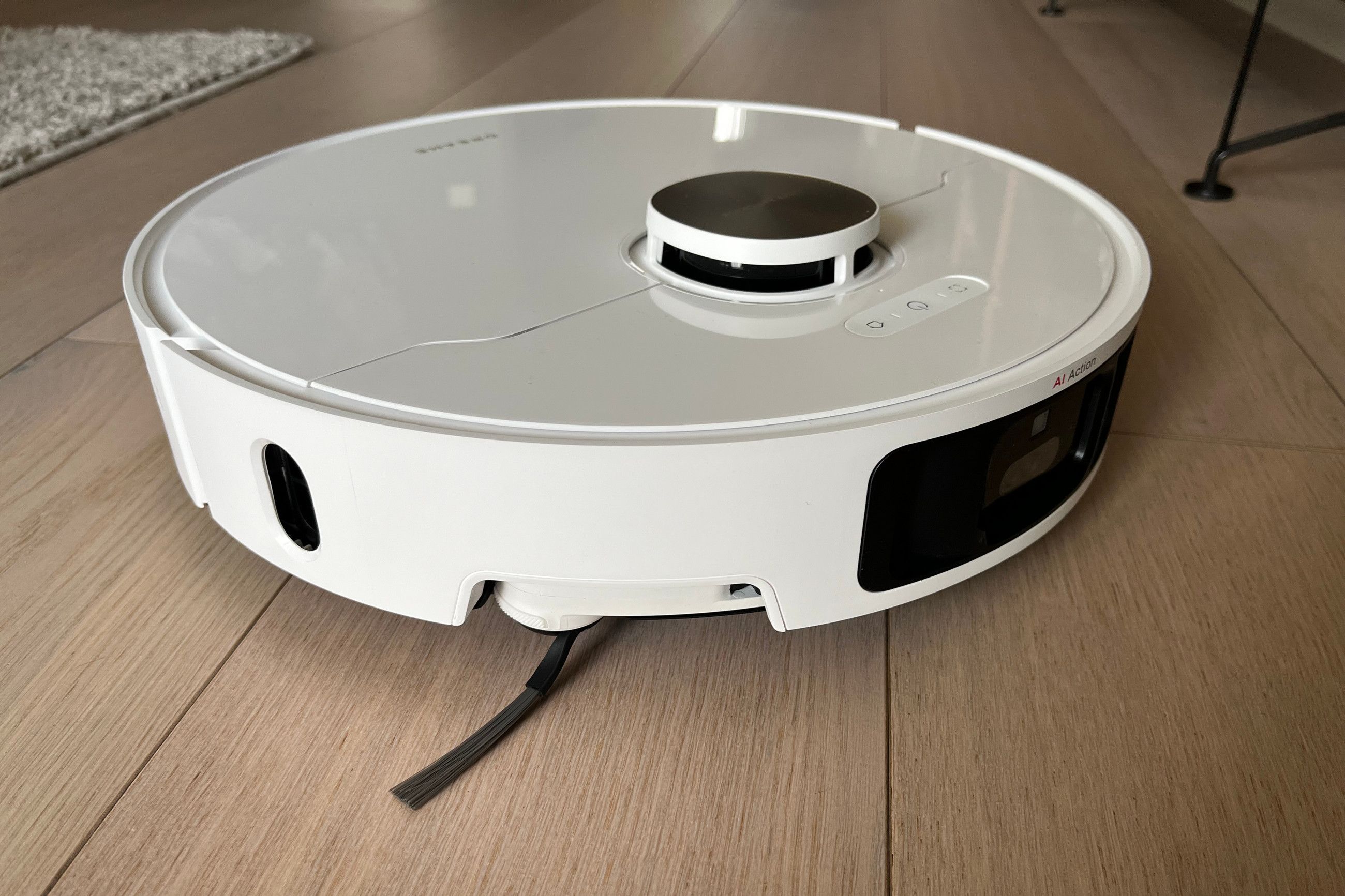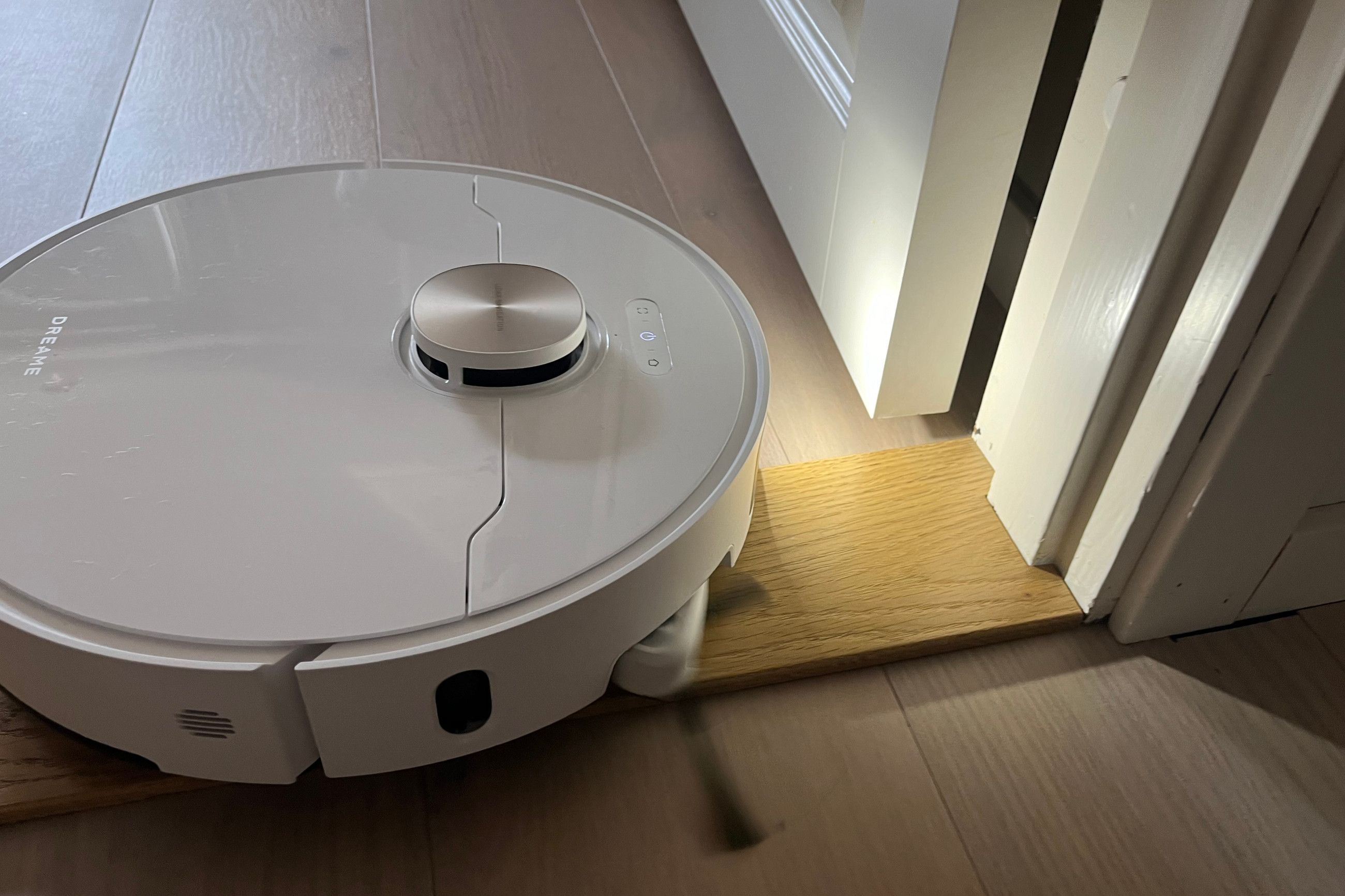Skulle roboten stöta på en våt fläck på golvet så höjer den huvudsopborsten upp till 10 mm vilket skyddar den från att bli blöt och kan således våttorka upp fläcken med sin moppborstar. Riktigt smart funktion av Dreame. Skall roboten dammsuga över en matta så höjer den moppborstarna 10 mm för att undvika att blöta ner den.