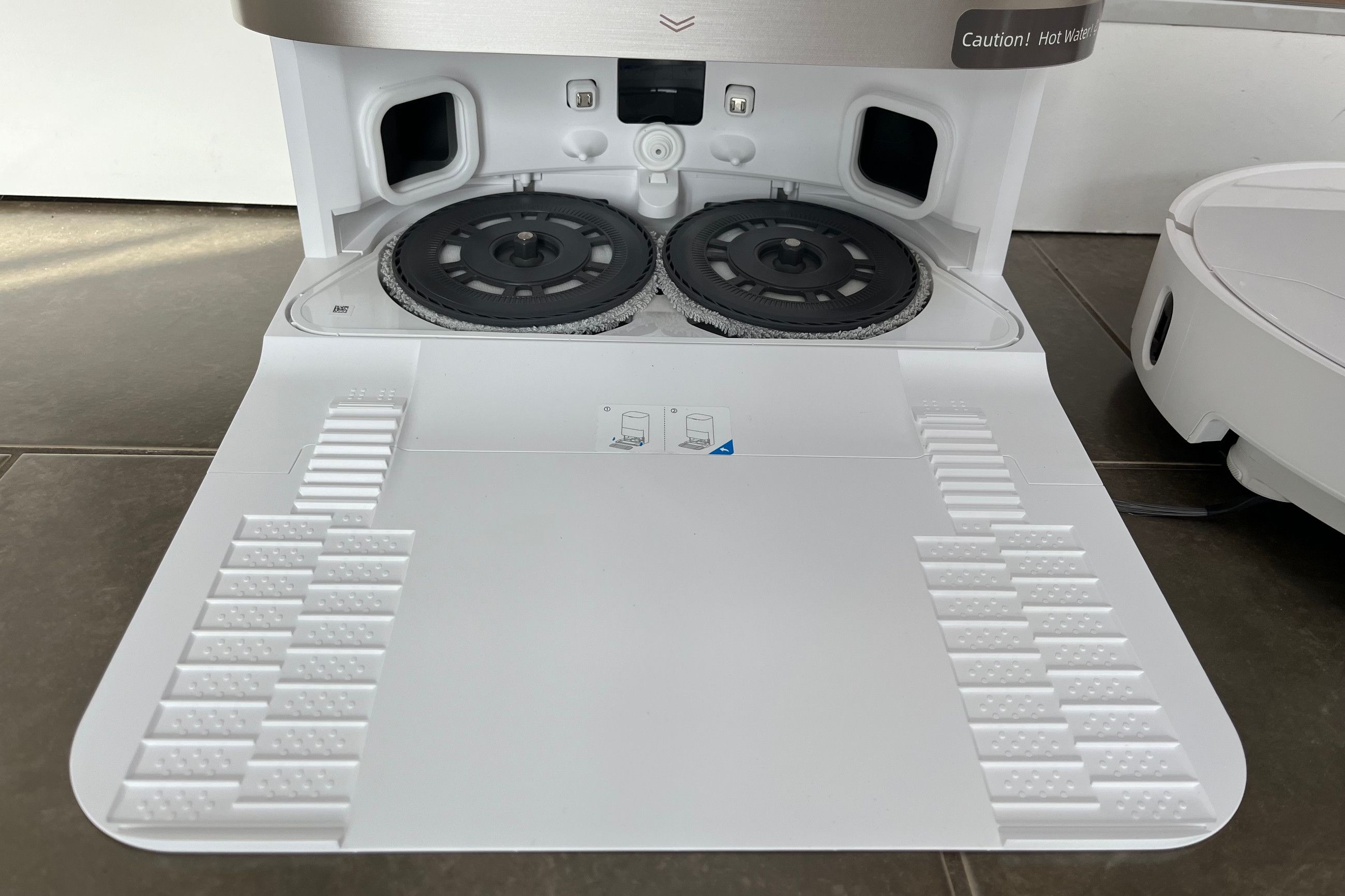 Utveckling har även skett i basstationens rengöringsfunktion av moppborstarna. Allt för att göra moppborstarna så rena som möjligt efter ett smutsigt städpass. Självklart torkar basstationen moppborstarna med en varmfläkt efter avslutad rengöring.