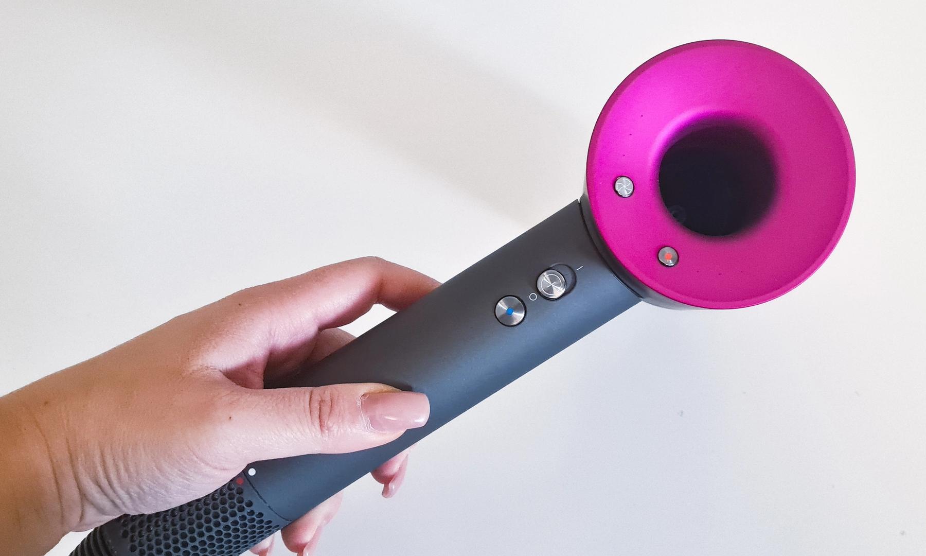 Dyson Supersonics vikt är också utmärkande. Med sina lätta 659 g så väger den knappt någonting och känns både lätt och stadig i handen. Greppet är riktigt bra och man kan jobba med den en längre period utan att bli trött i handleden.