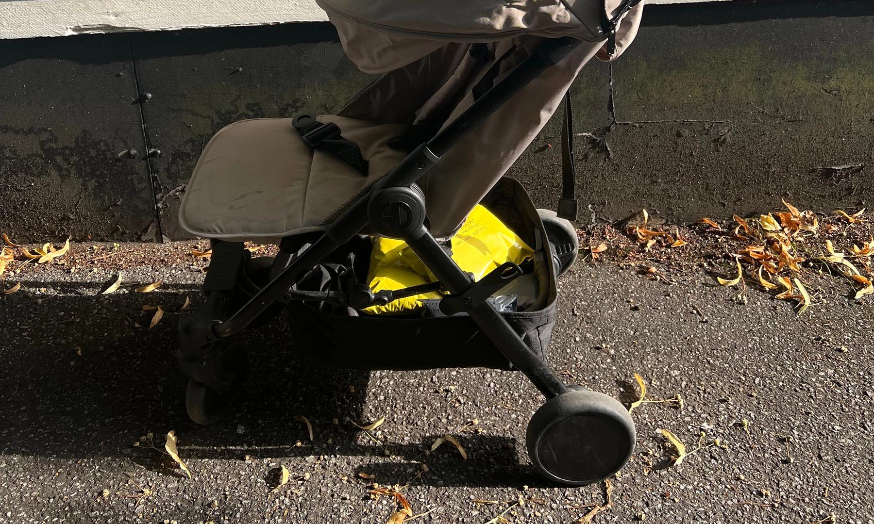 Resevagnar har av förståelig anledning sällan speciellt stora varukorgar men i Mondos varukorg får jag ändå plats med överraskande mycket. Den har en öppen design vilket gör det bästa av förutsättningarna.