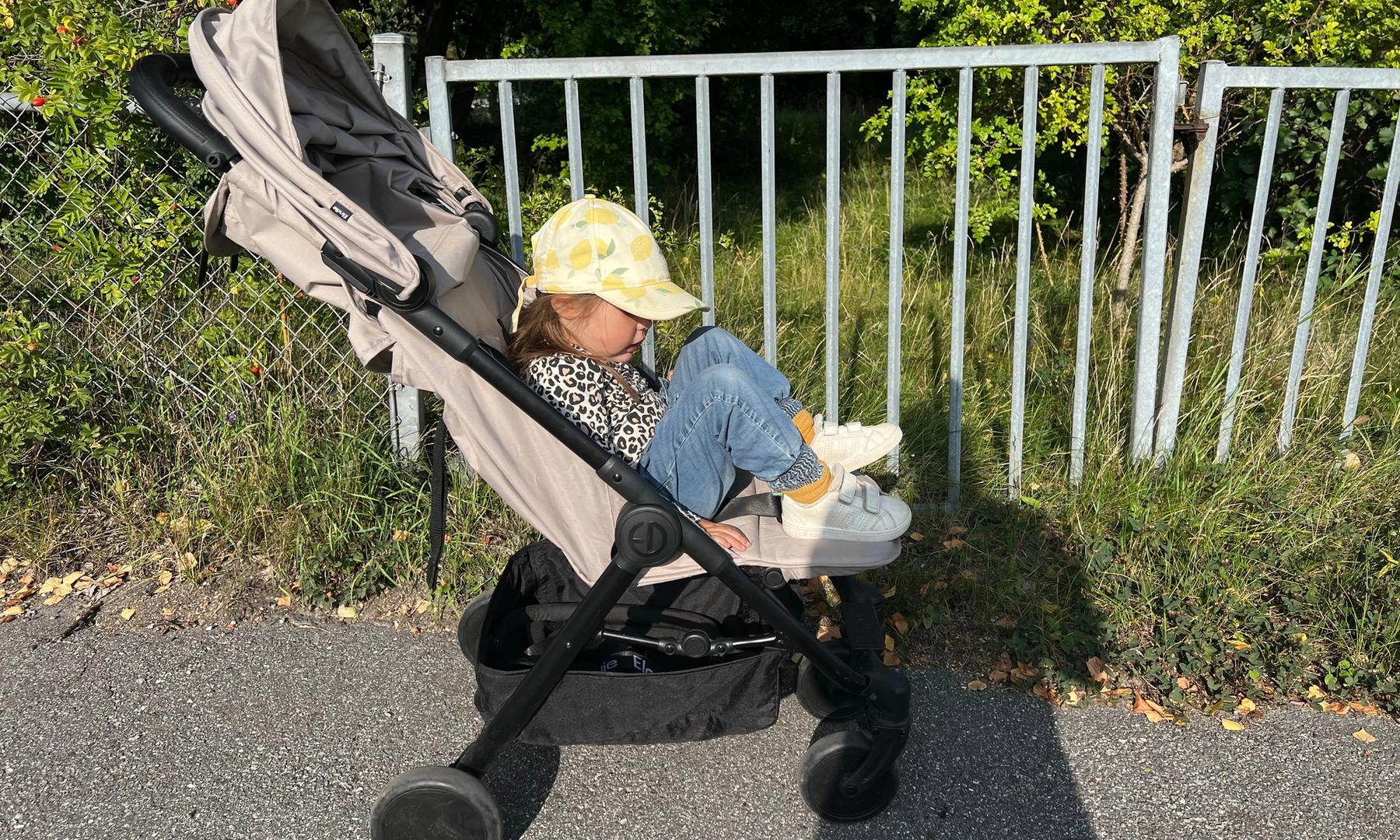 Det finns också ett litet fotstöd som förlänger liggytan, dock är det lite för kort för att användas i sittläge för lite större barn men för bar kring året funkar det utmärkt. För större barn finns ett fast fotstöd i chassit.