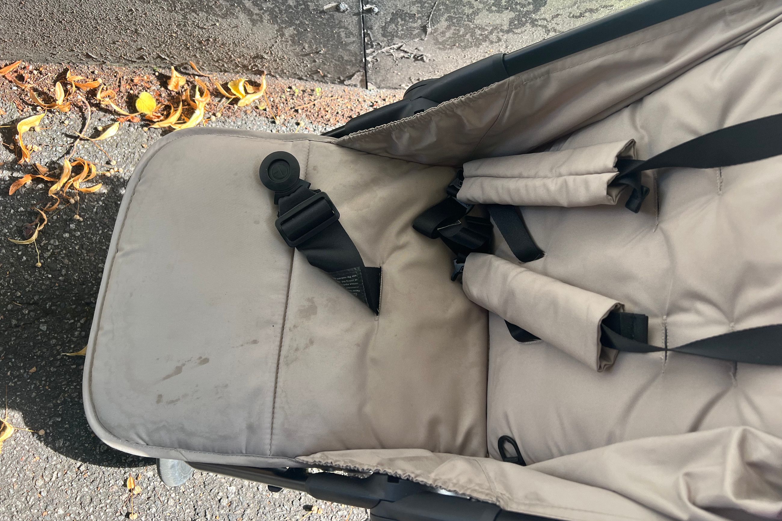 Jag testade en vagn med en ljus klädsel och jag upplevde att den blev smutsig direkt! Den sög åt sig fläckarna som blev väldigt synliga. Dock finns Mondo i en uppsjö av färger och mönster så detta är förmodligen inget problem på de mörkare klädselvarianterna.