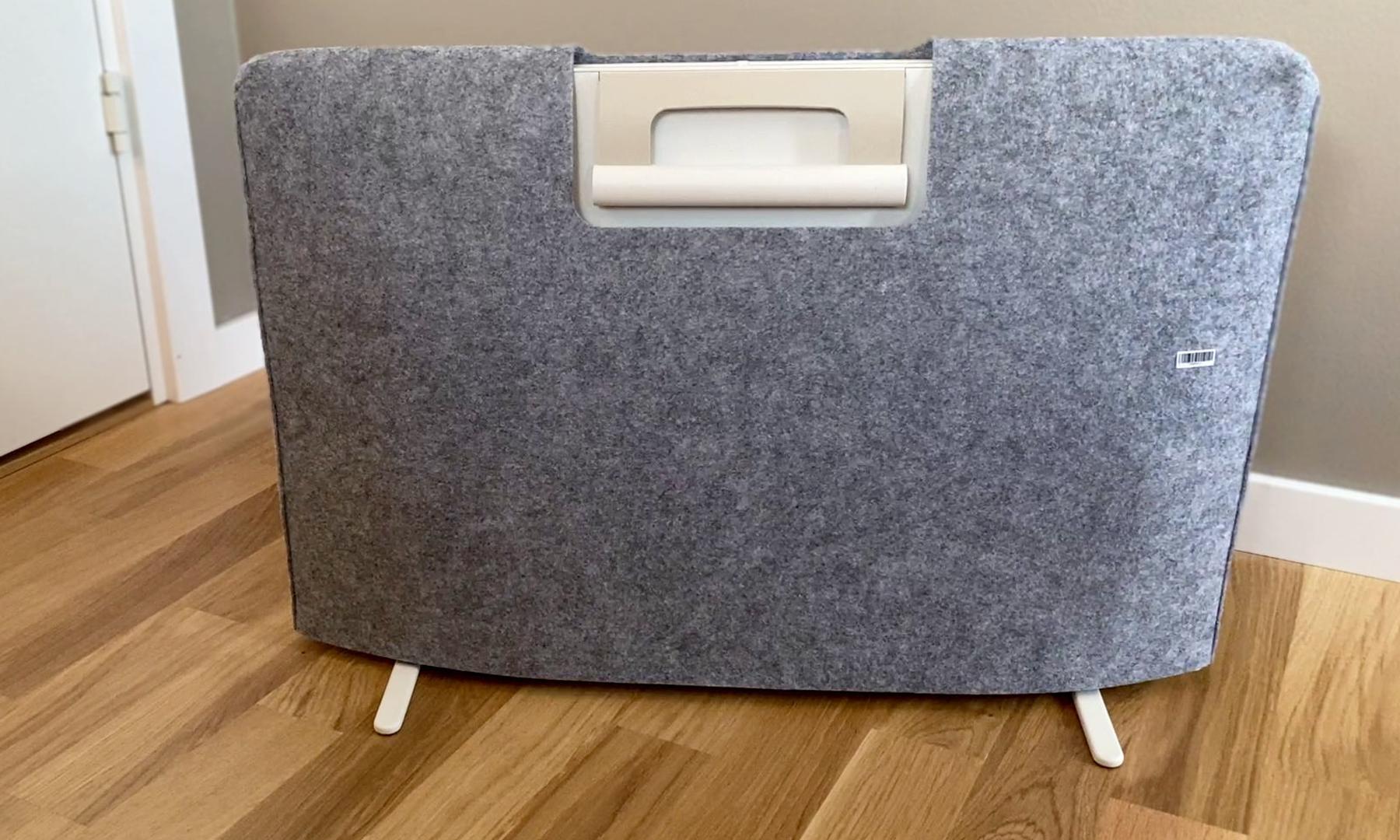 På baksidan finns en tygficka där det inkluderade tangentbordet kan stoppas undan när det inte används. Även framsidan har blivit tygprydd längst ned. Vilket med den svarta ramen runt skärmen skapar en riktigt sofistikerad look (om man kan säga så om en dator).