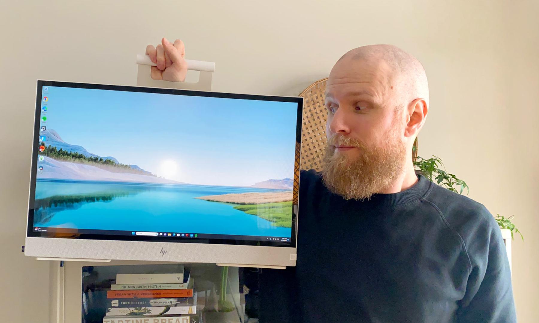 HP Envy Move All-in-One är i mångt och mycket en iMac-klon. Det vill säga en skärm med inbyggd dator. Det lite häftiga med just denna dator och varför den faktiskt är än mer tilltalande för mitt allt-i-ett-begär jämfört med just en iMac är att den har ett inbyggt batteri. Datorn går alltså att bära med sig. Som en portfölj, modell lite större.