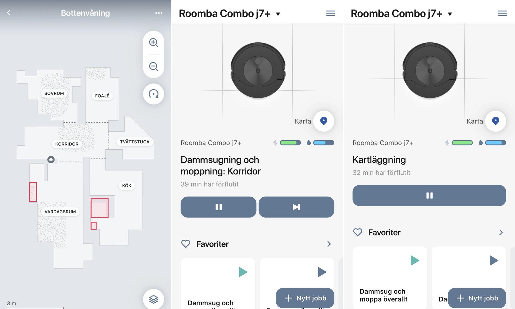 Då j7+ inte innehåller så mycket funktioner utan det mesta styrs genom maskininlärning och automationer är det inte mycket du som användare behöver tänka på vid styrning av roboten. Man kan ställa in olika favoritstäd-program så att städningen startar med bara ett tryck i appen.