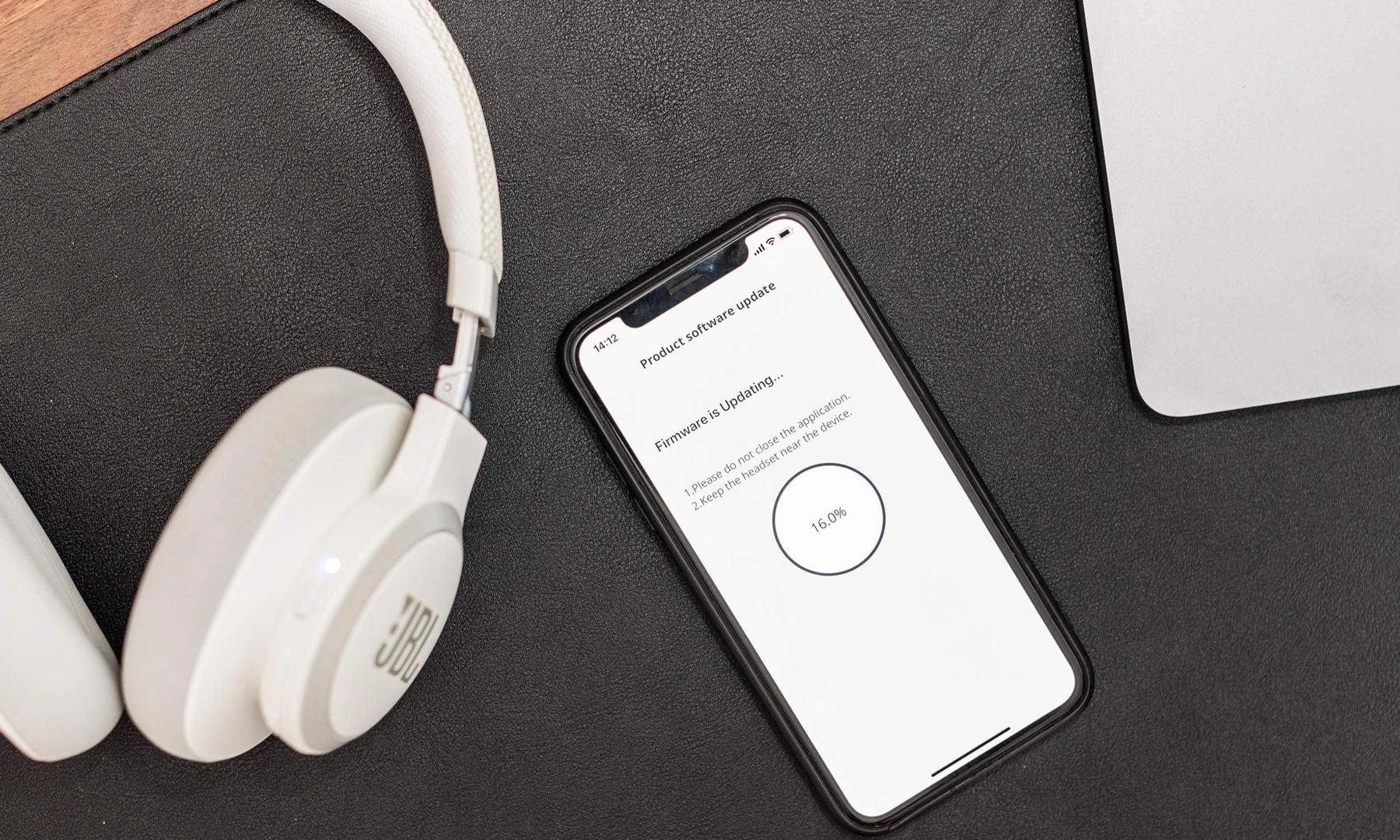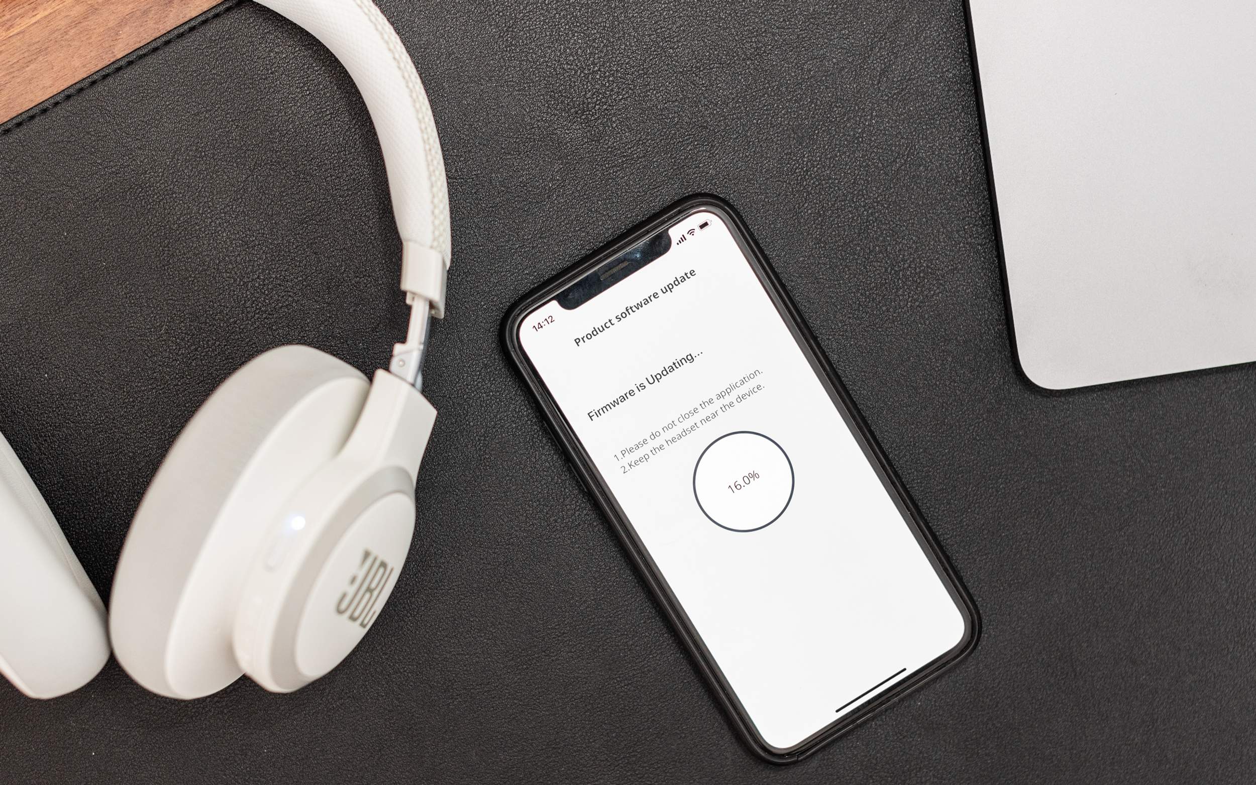 På mobilen kan du hämta hem JBLs ’Headphones’ app. Den är simpel, på gott och ont. Du kan slå på/av ANC, uppdatera programvaran och ändra frekvenskurvan med en EQ - som hade varit riktigt bra om den bara gick att göra större, t ex genom att tilta skärmen åt sidan. Som det är nu är det för pilligt att göra exakta justeringar. När det är dags att uppdatera får du vara beredd på att ta dig en kaffe och läsa en bok medan du väntar, för det tar minsann tid. Löjligt lång tid.