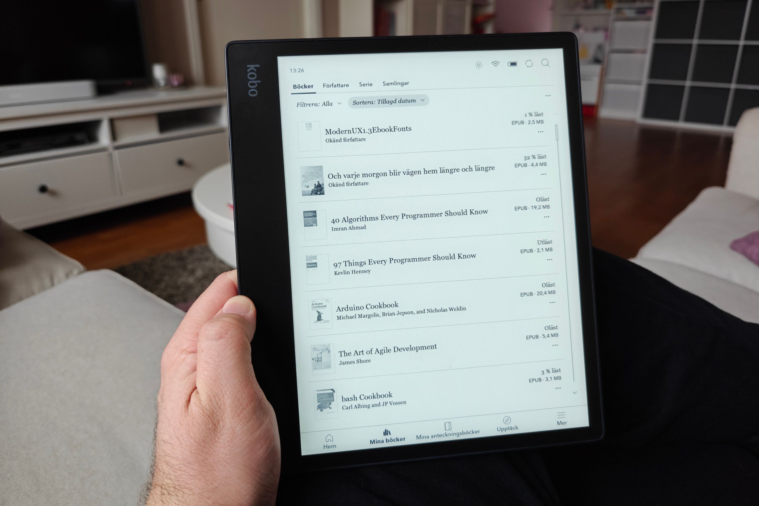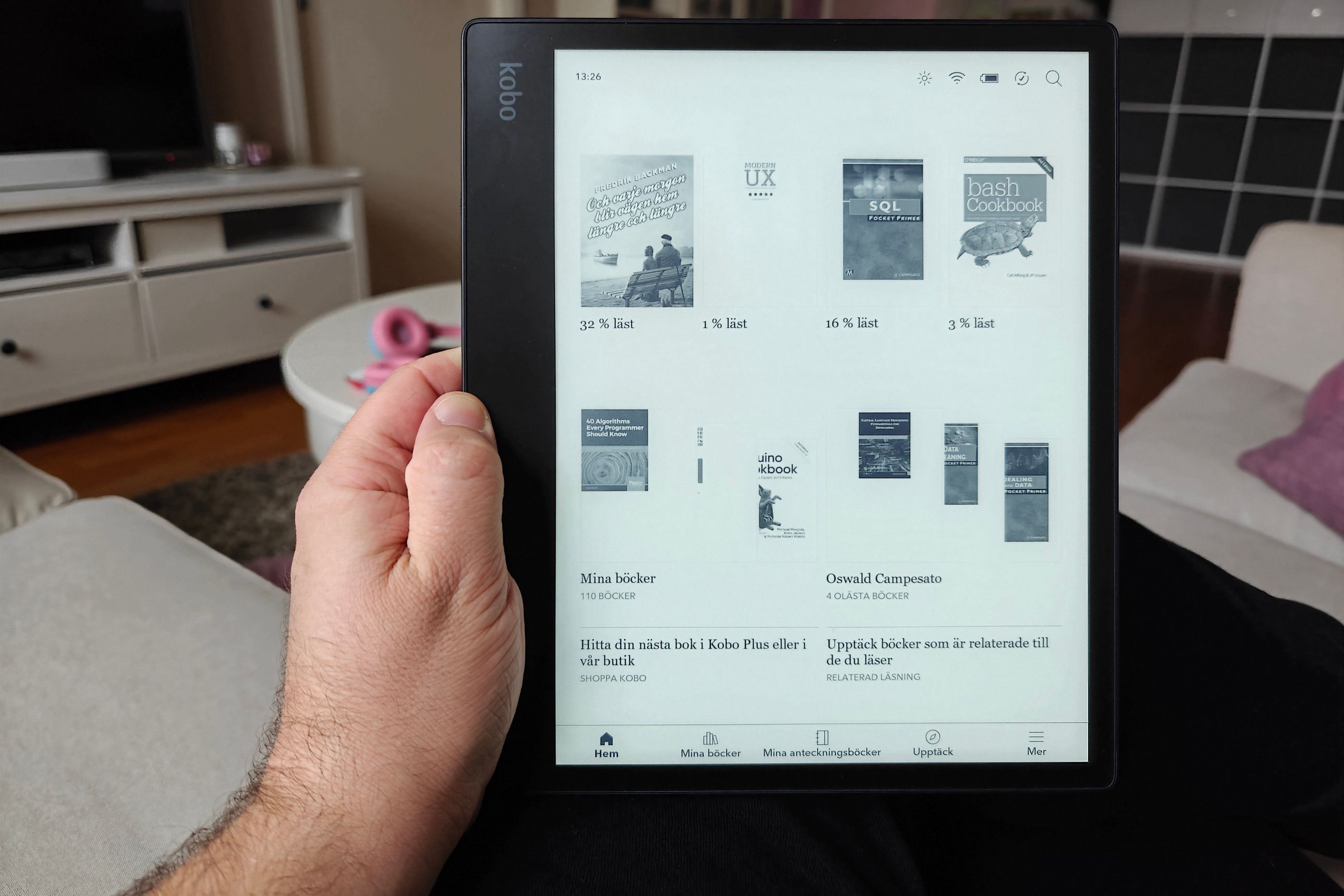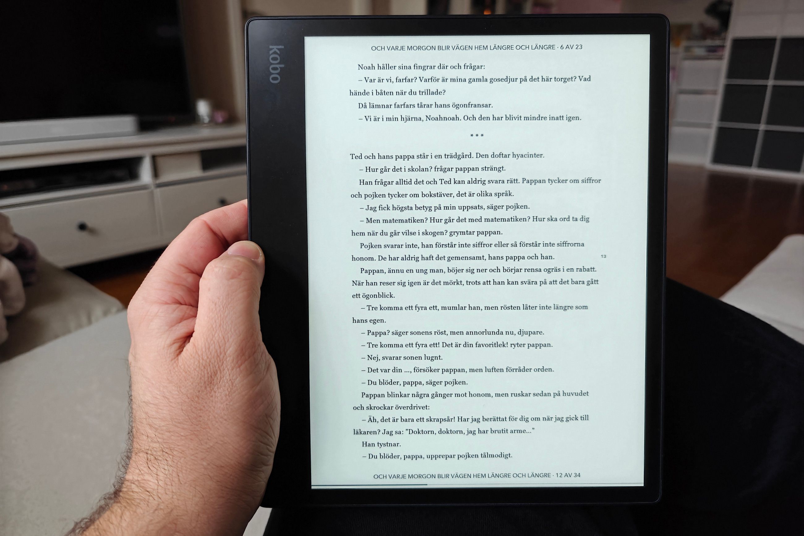 En läsplatta med större skärm som Kobo Elipsa 2E har onekligen sina fördelar, det blir mer skärmyta och det går generellt att dra ner teckensnittet i storlek en del utan att det för den delen blir oläsbart.