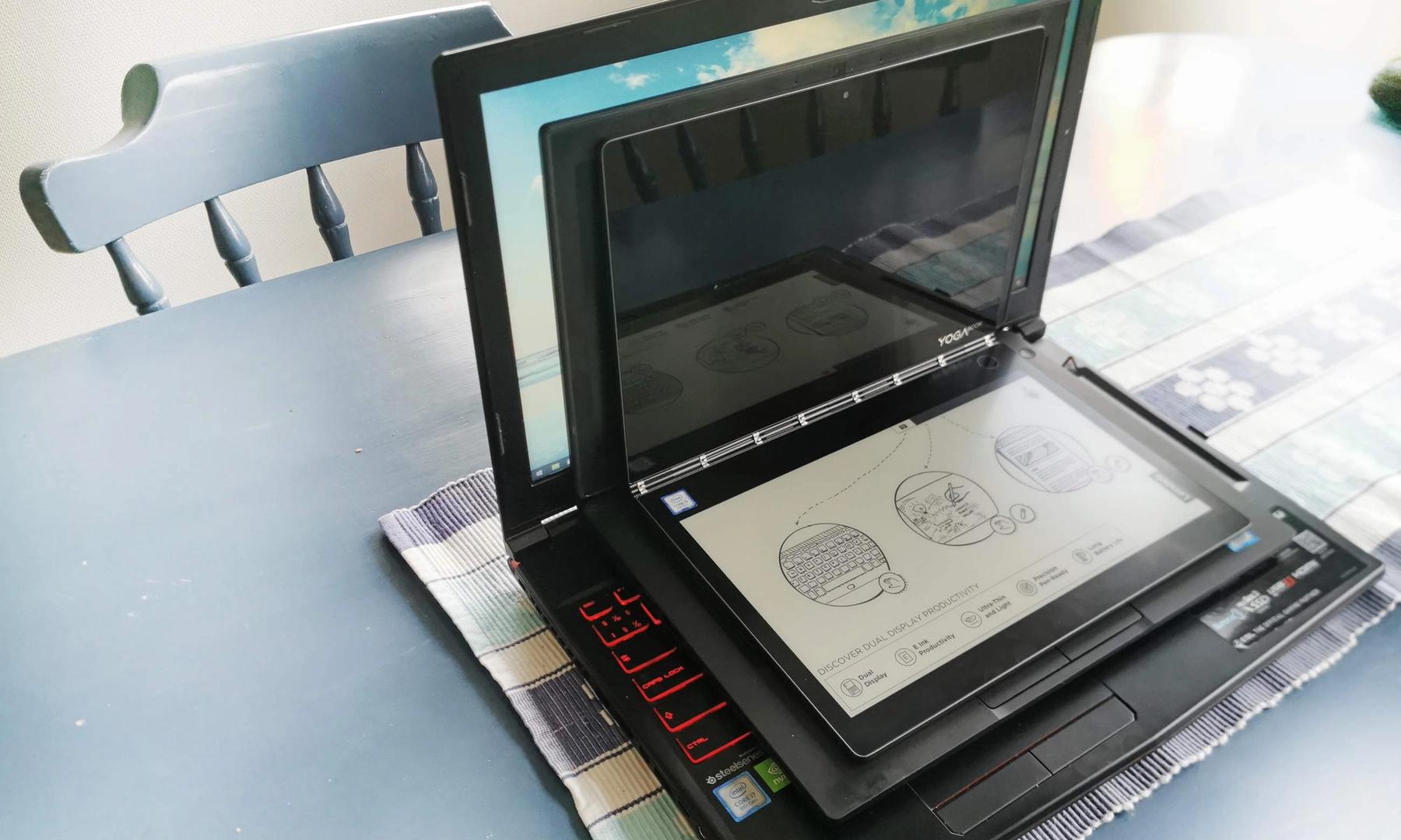 Jag har då tagit på mig senaste projektet Lenovo släpper i deras enorma arsenal av ovanliga laptops! Denna i form en hybrid-laptop som kombinerar pek/ritskärm med något ännu mer ovanligt - en Ink Screen. Denna skärmen ser ut som att den tillhör en bok och är till för att rita, skriva eller läsa på. Man förvandlar det platta Halo-tangentbordet till ritblock med ett enda klick och kan sedan enkelt digitalisera bilderna till datorn. Om man lägger en text på den är det nästan samma känsla som att läsa en bok!