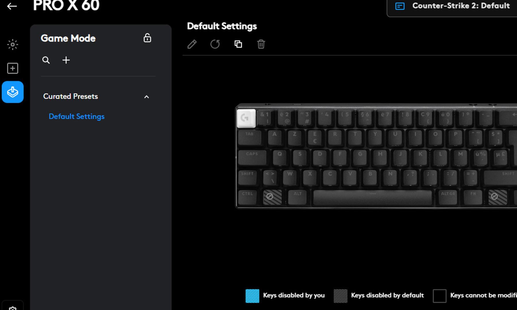 Med ett 60%-tangentbord som PRO X 60 Lightspeed så försvinner piltangenterna vilket gör att det blir ännu kompaktare och visst kan man sakna de riktiga pilarna ibland, särskilt vid ovana som det är för mig. Men funktionalitet för att mappa om tangenterna finns och det räcker lång väg men tar tid att bli van med. Logitech löser det riktigt fint i mjukvaran G Hub.