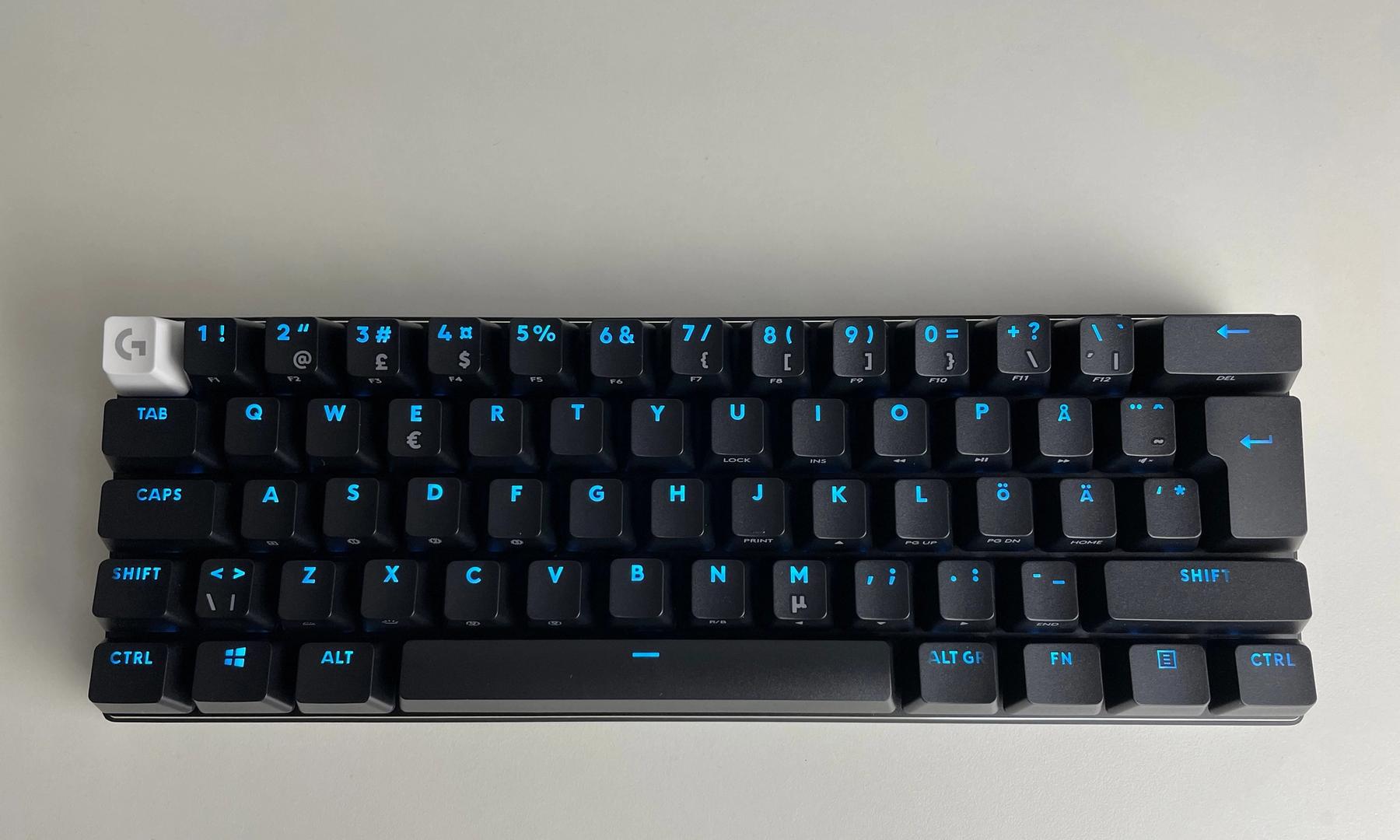 Det är otroligt vad smidigt detta tangentbord är och hur mycket plats som sparas tack vare det kompakta 60%-formatet. Det fungerar bra för den med mindre plats och det ger åtminstone mig en ergonomisk fördel när händerna hamnar närmare varandra. Logitechs mjukvara gör det enklare att inte sakna de bortplockade tangenterna med så kallade re-mappade tangenter och lager.