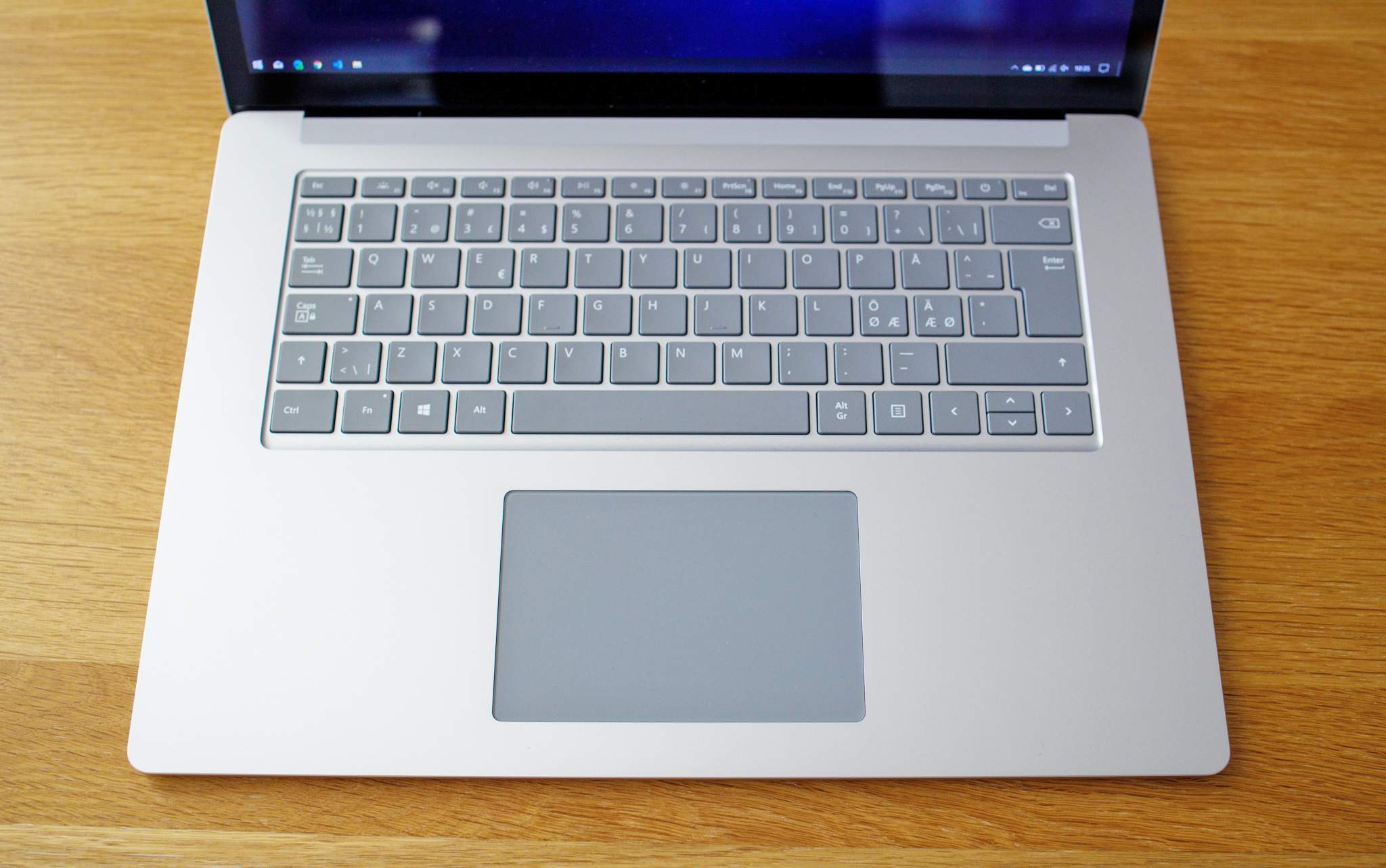 Till att börja med så vill jag gnälla lite på att man missat möjligheten att i 15”-modellen utöka storleken på pekplattan, likt MacBookens närmast gigantiska pekplatta som fyller ut allt extra utrymme riktigt bra. Pekplattan på Microsoft Surface Laptop är bland de tveklöst bästa på PC-sidan men kom igen Microsoft, sluta snåla och använda samma platta som i 13,5”-modellen! Utnyttja utrymmet och gör det som är bra ännu bättre!