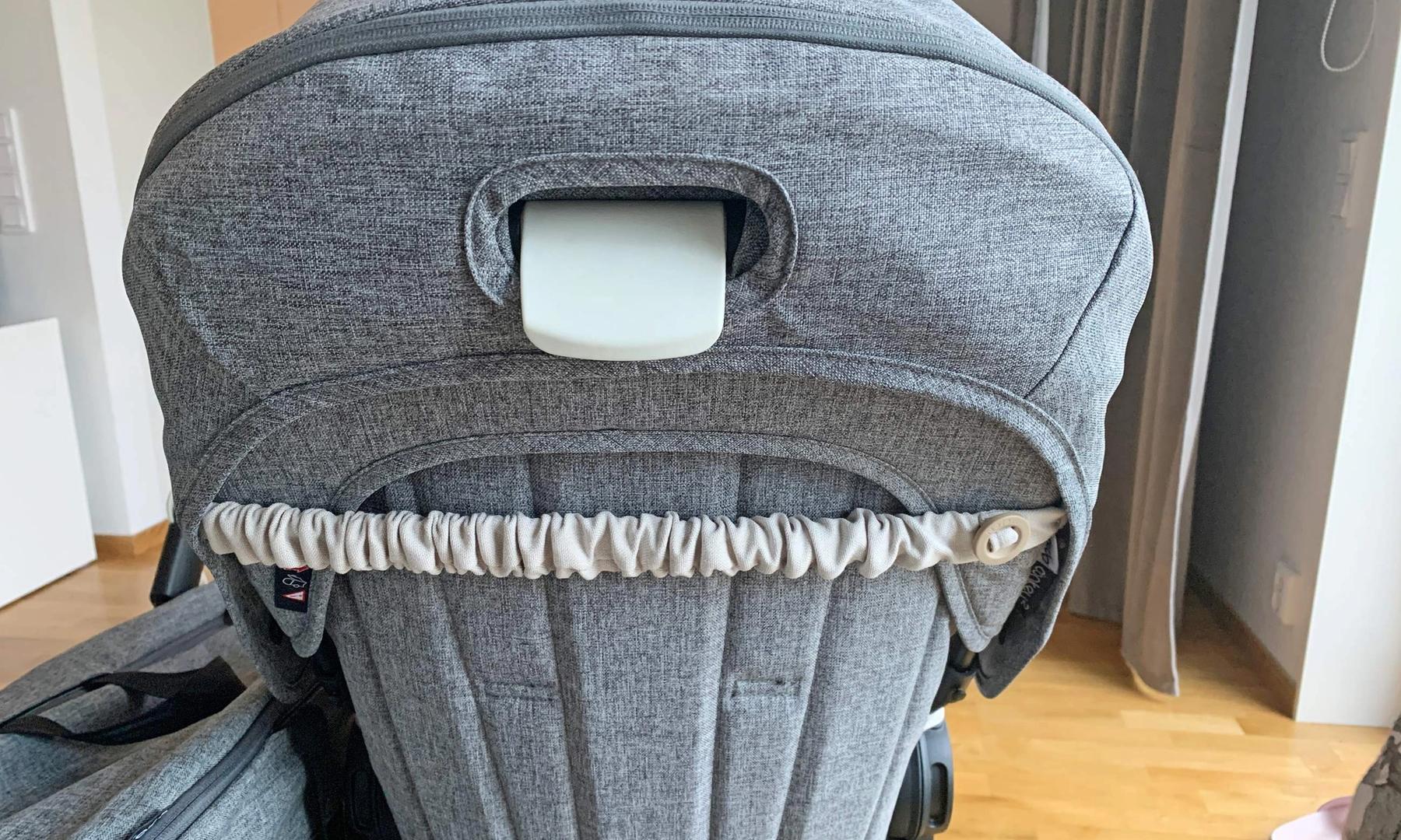 Jag blir extra glad över att den verkligen sitter på plats med hjälp av ett elastiskt band som man trär över barnvagnens rygg samt ett bredare band man kan trä på under sittplattan på de vagnar som har den funktionen (ex. modeller från Bugaboo och Joolz). Jag har även med hjälp av sidoöglorna fäst åkpåsen ännu bättre runt sittramen, vet dock inte om dessa är till för det men jag tyckte det var mycket passande. Till sist gillar jag den stora kardborreöppningen i ryggen som lätt fungerar med alla slags selar, det är jättesmidigt när man använder åkpåsen till flera vagnar och vill att det ska gå smidigt att byta.