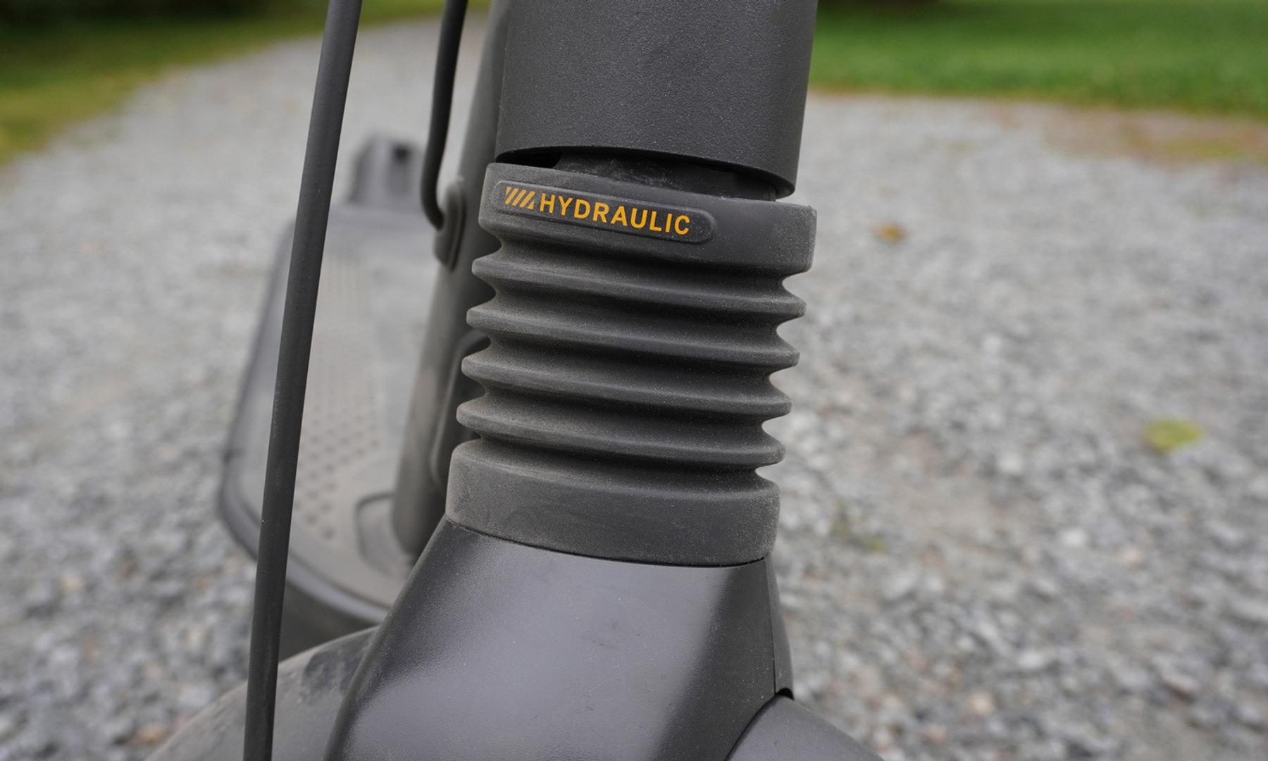 Varför är den så bekväm att köra? Jo, för att fram sitter en hydraulisk dämpare som tar de första smällarna.