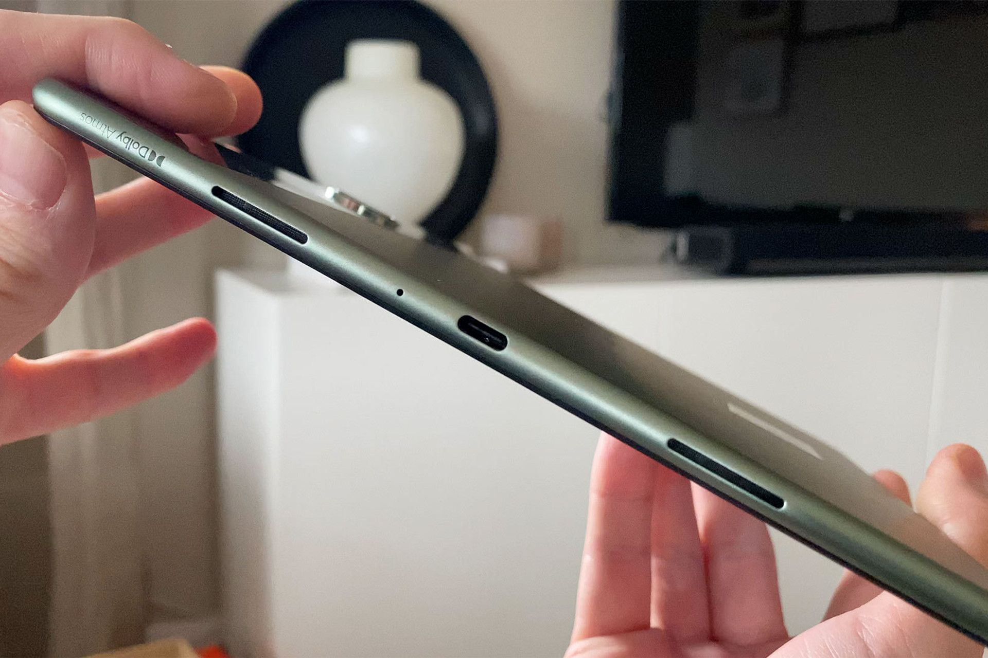 Baksidan av plattan är annars ganska trevlig att vila ögonen på och i kombination med den tunna designen leverar OnePlus Pad Go en väldigt lätthållen upplevelse. Däremot är den övre, högblanka delen av baksidan väldigt förtjust i fingeravtryck.