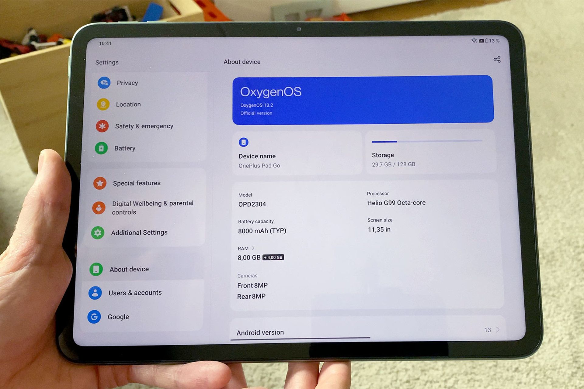 Sett till mjukvara kör Pad Go fortfarande Android 13 med OnePlus egen OxygenOS (13.2)-kostym ovanpå. Här är det faktiskt lite snopet att OnePlus inte direkt på hoppat på senaste Android 14. Men utöver det är det inga större fel på funktionaliteten när det kommer till OxygenOS som håller sig någorlunda nära upplägget hos vanliga Android.