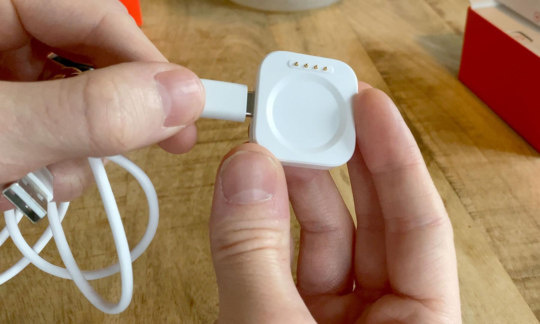 Ytterligare trevligt är att klockan endast behöver cirka 10 minuters laddning för att orka med en hel dags användning. Medan en timmes laddning fyller batteriet helt. Den inkluderade laddpucken har därtill en vanlig USB-C-kontakt (tack!) och håller klockan ordentligt på plats under laddningen.