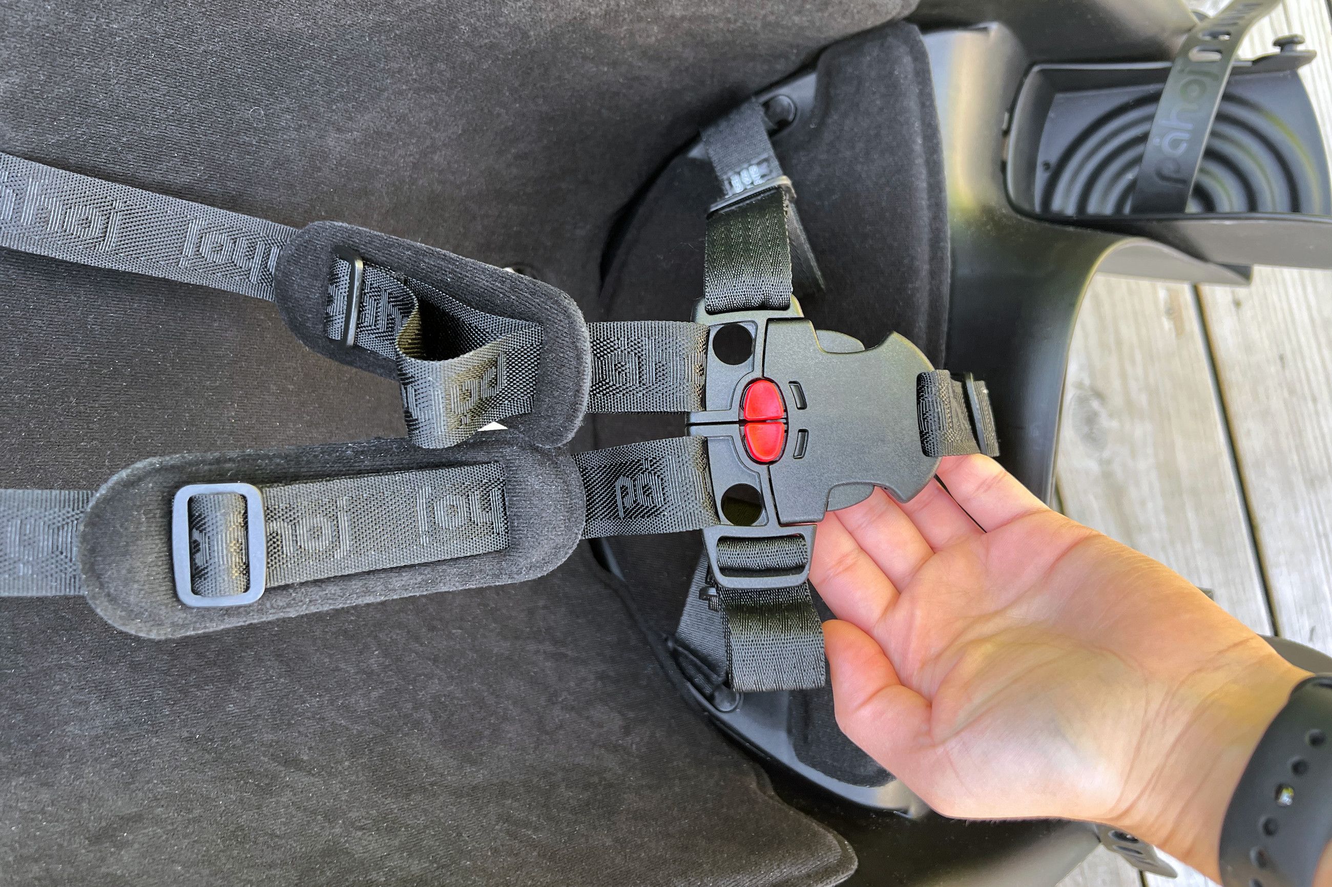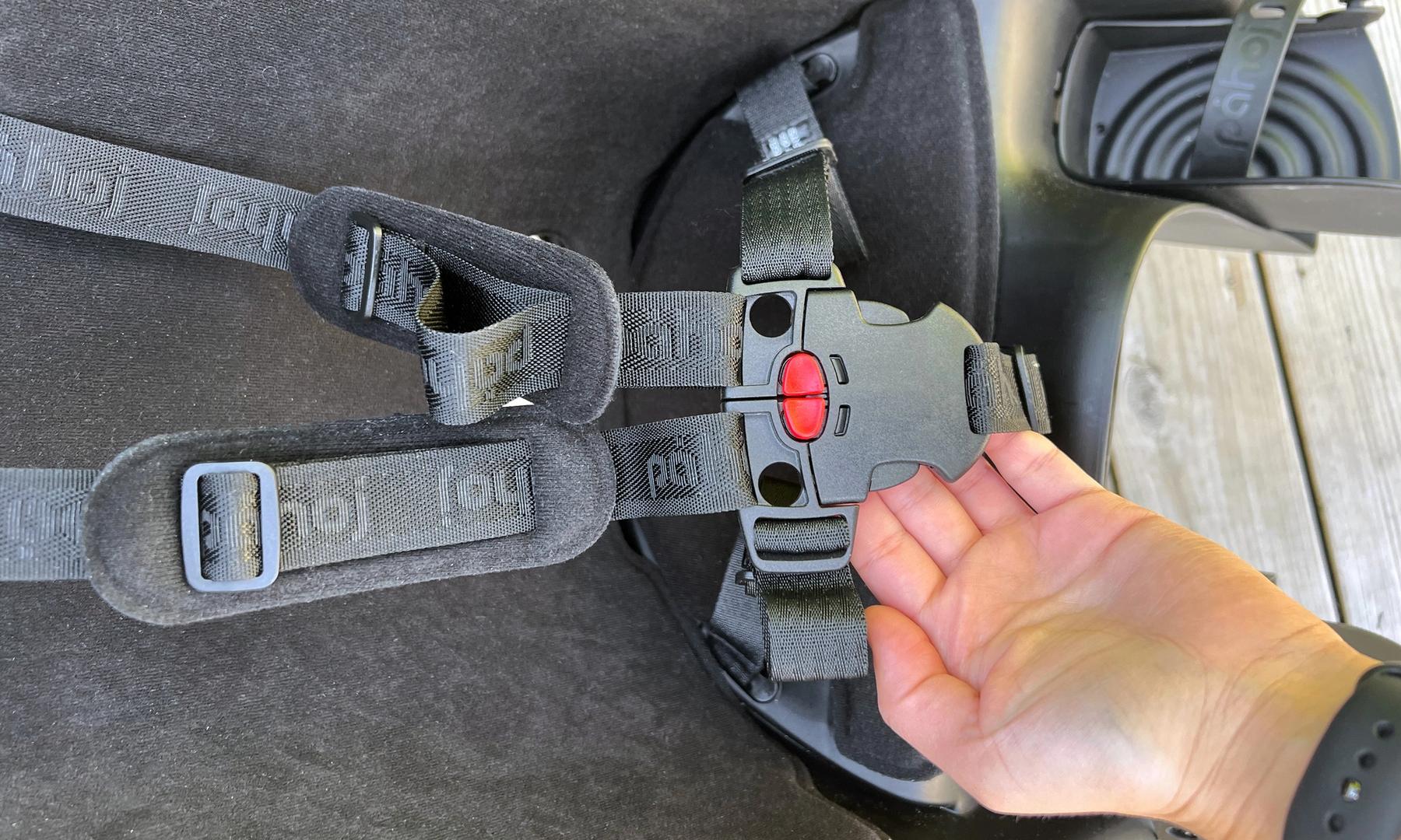 Sitsen har en bra fempunktssele som man kan spänna i lämplig längd så att barnet inte kan ta sig loss. För att klicka loss spännet behöver man också trycka på två ställen samtidigt, något som gör att spännet känns tryggt och barnsäkert.