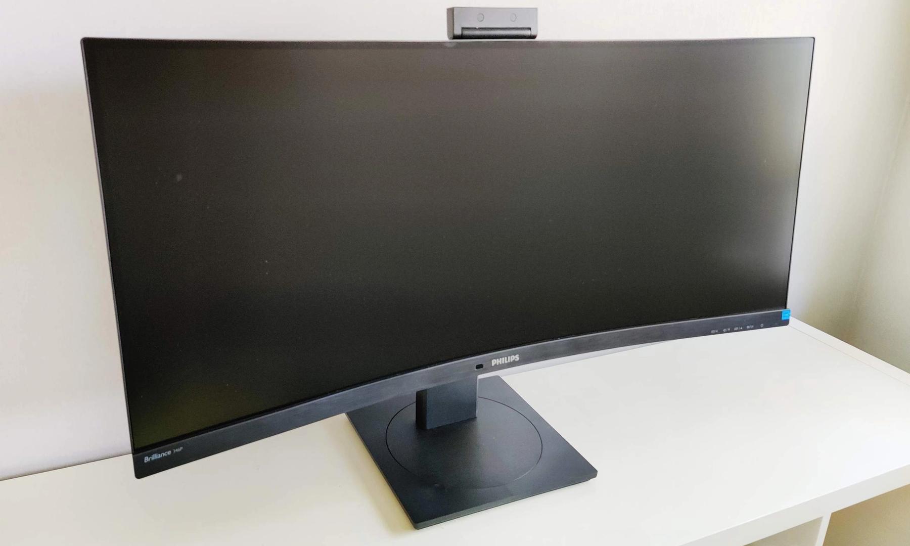 Philips 346P1 är en 34”-skärm som med sin böjda design omfamnar dig vid skrivbordet. Välvda bildskärmar har sin charm och funkar bra på en skärm i denna storleken. Det som funkar lite mindre bra är själva konstruktionen av skärmen.