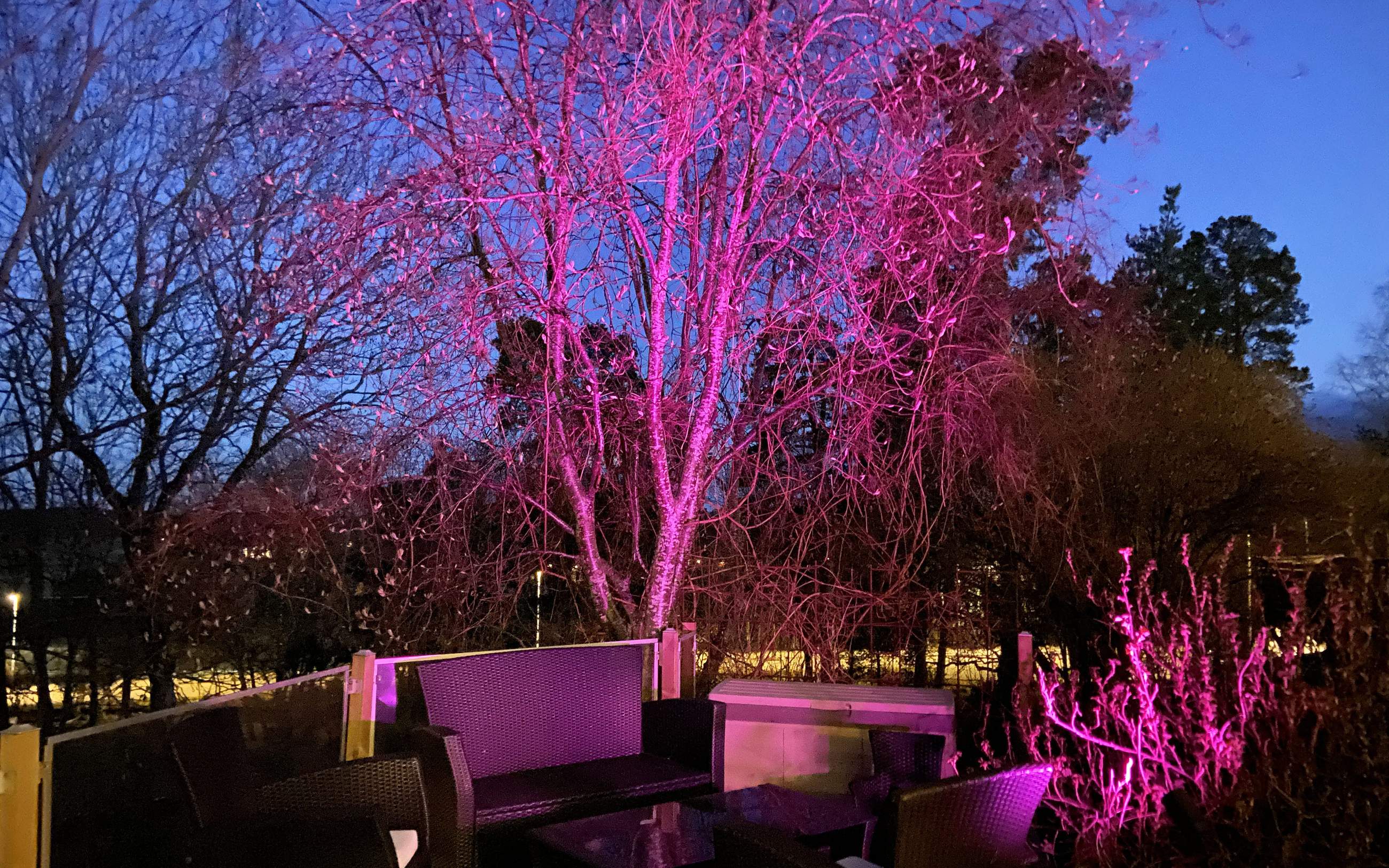 När du har en Philips HUE-hubb kan du börja styra dina spottar från din smartphone. Mina snappades upp direkt på en sökning i appen även fast de redan var monterade på plats utomhus. Jag rekommenderar att du skapar ett nytt rum som du döper 'Utomhus’, ställer in en scen du gillar som slås igång när solen går ner och stängs av ett visst klockslag eller när solen går upp igen. Då behöver du aldrig mer tänka på utebelysningen utan kan bara njuta av de upplysta träden varje gång du går ut när mörkret har fallit.
