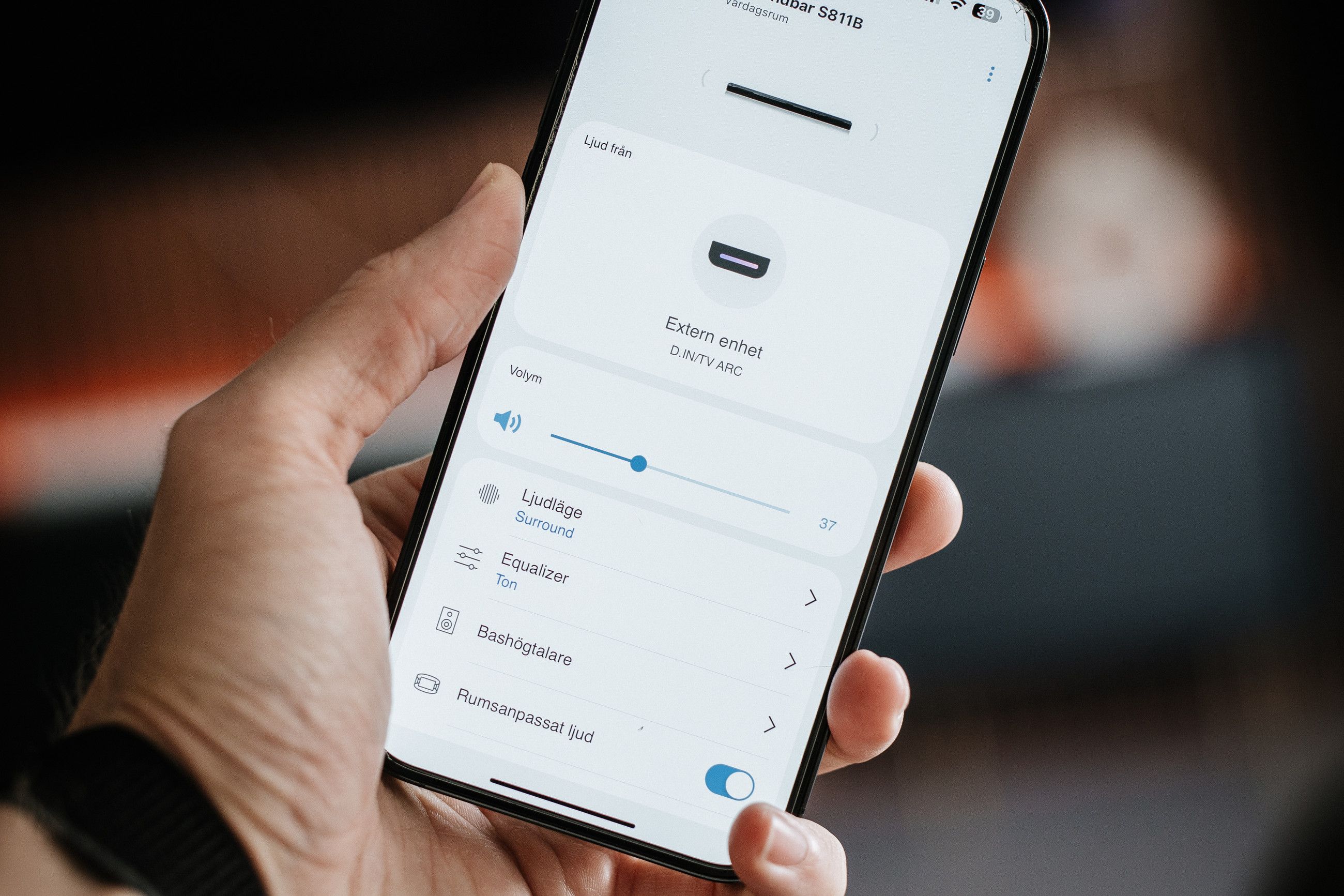 Dagens Samsung-app heter "Smartthings" och kräver att du loggar in/skaffar ett Samsung-konto, vilket jag ogillar. Men förutom det är den intuitiv och ovanligt snabb; både soundbar och sub är körklara innan du hinner blinka.